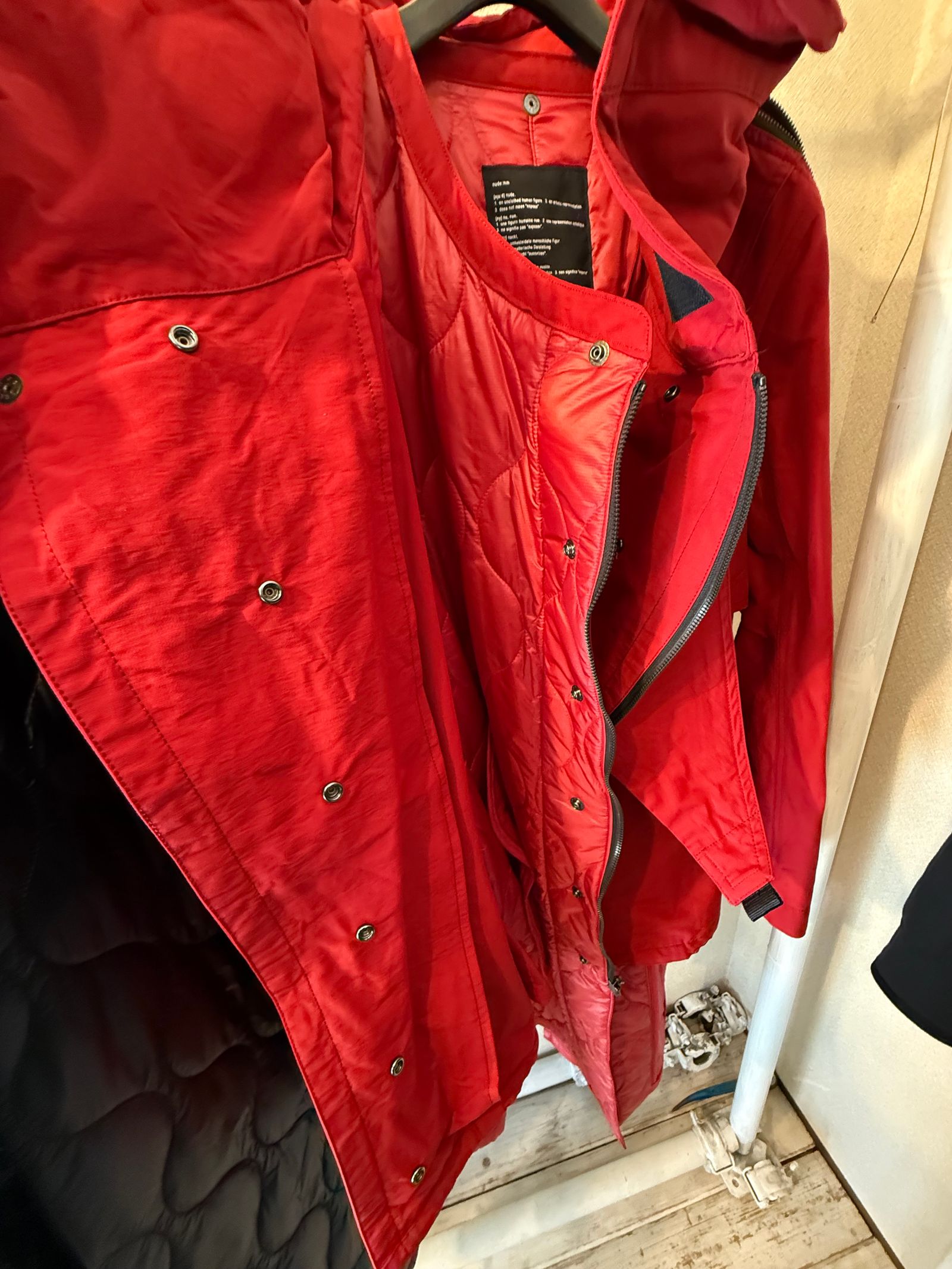 別売りのキルティングライナーも同色でブラック/レッドの2カラーで展開しており、スナップボタンでドッキングする事が可能です。
