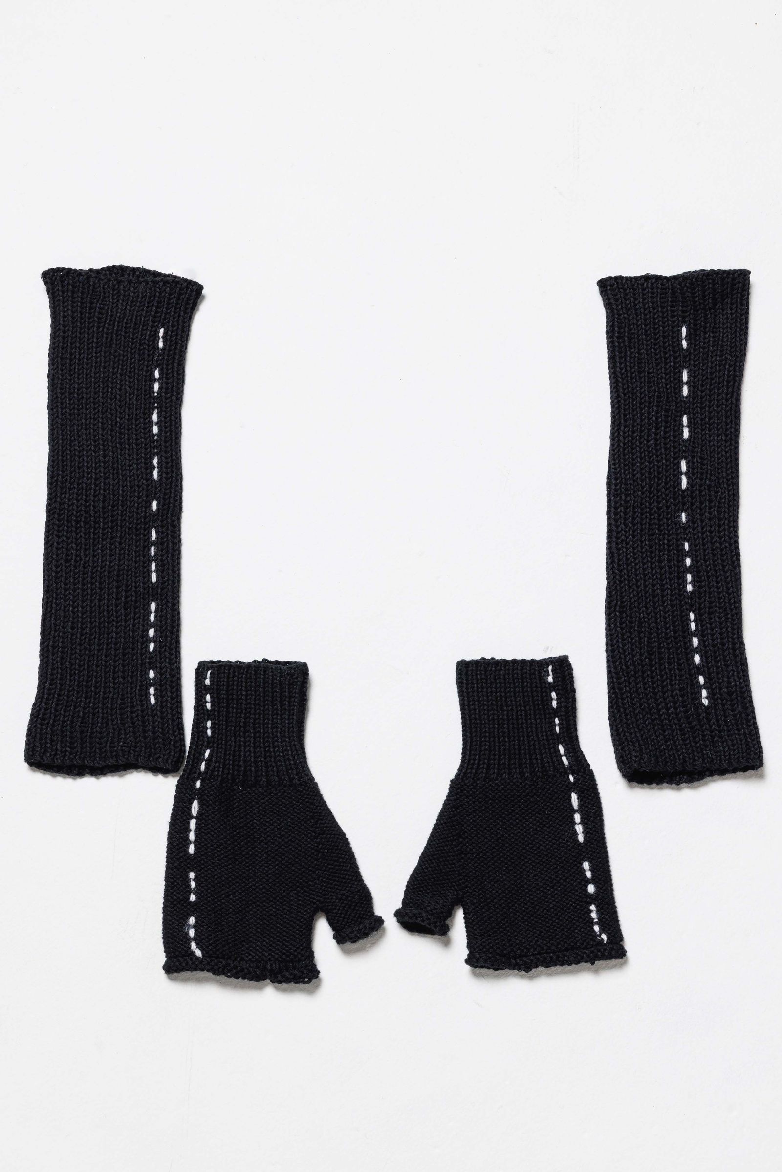 手編みニットのフィンガーレスグローブとアームウォーマーのセットアイテム。