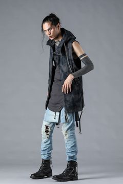 Non-ply Yarn Lined Coated Hooded Vest "Clay Blue"無撚糸裏毛コーティングフーデットベスト"クレイブルー"