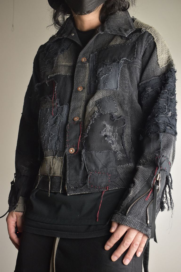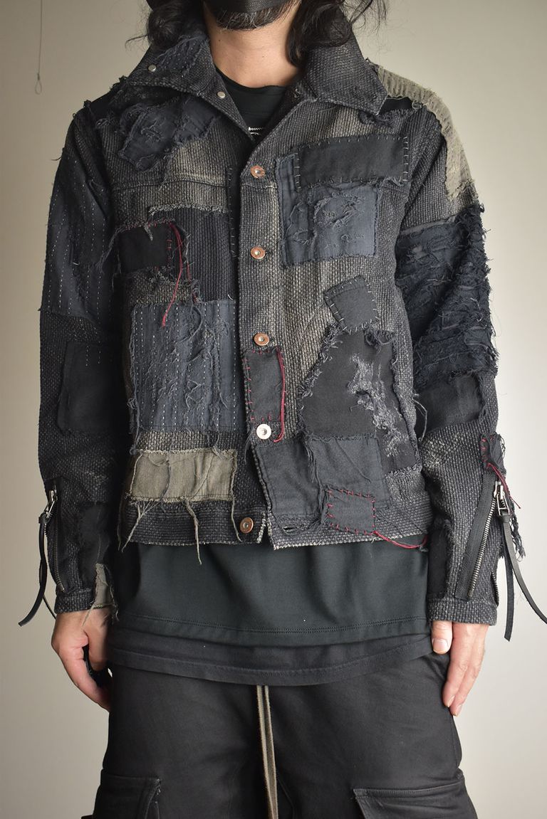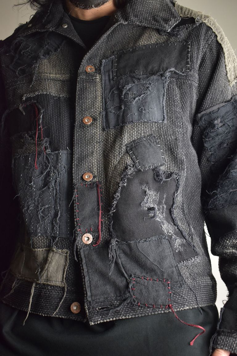 Crust Damage Repair Sashiko Jacquard Jacket "Black" / クラストダメージリペア刺子ジャガードジャケット"ブラック"