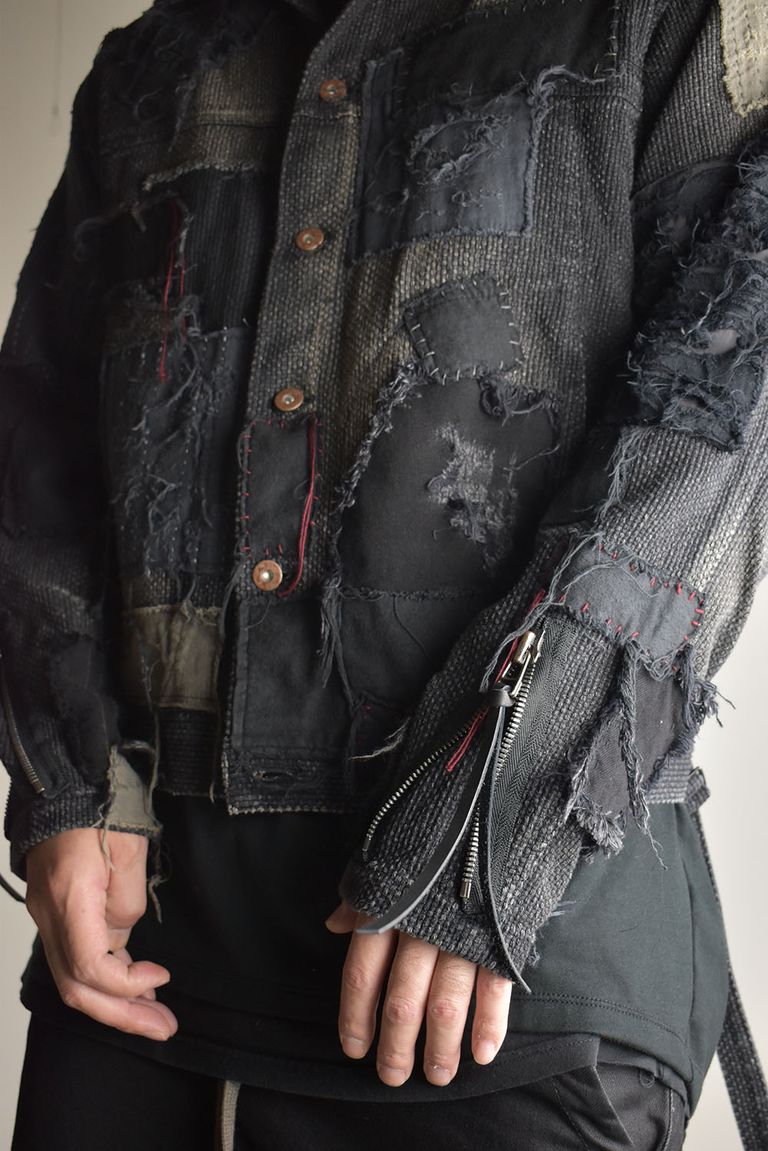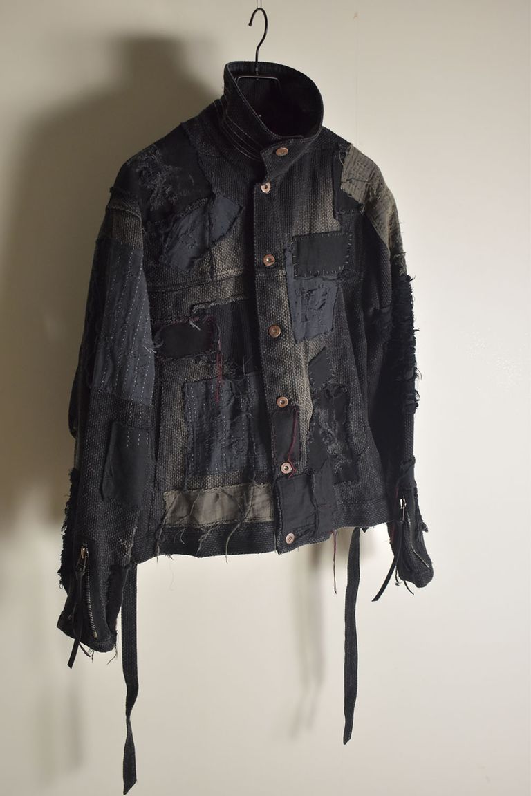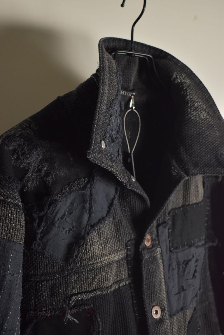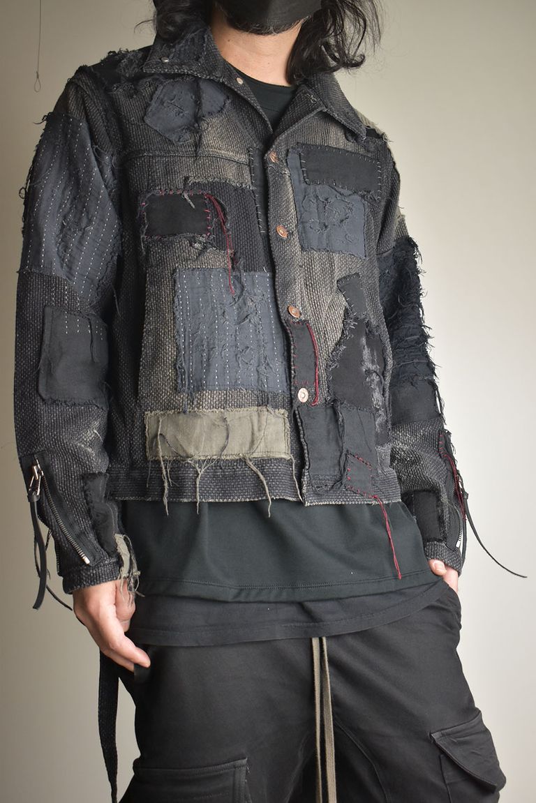 Crust Damage Repair Sashiko Jacquard Jacket "Black" / クラストダメージリペア刺子ジャガードジャケット"ブラック"