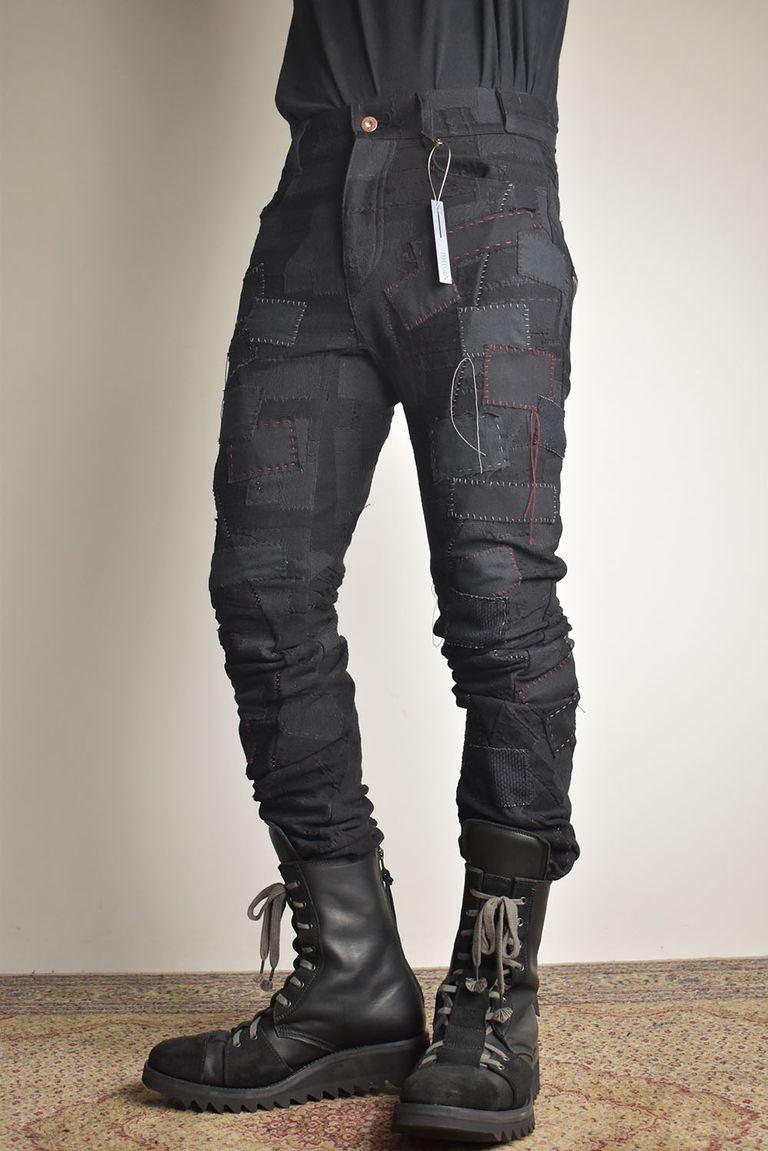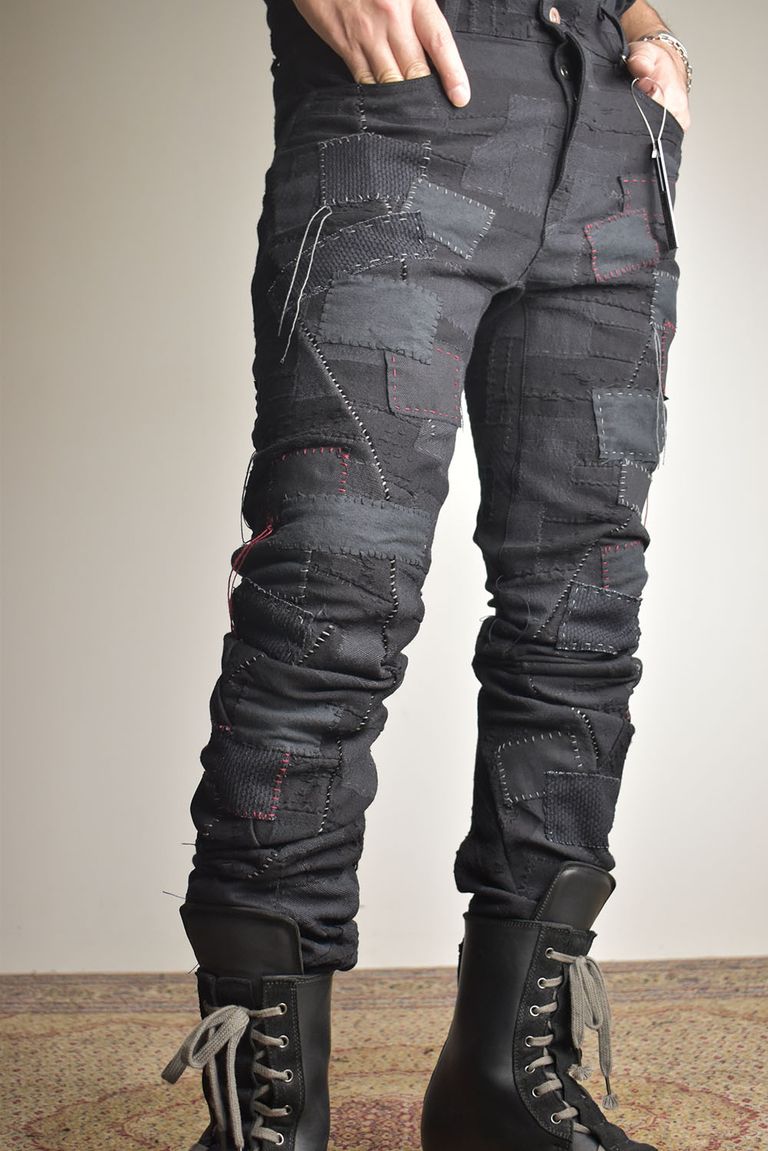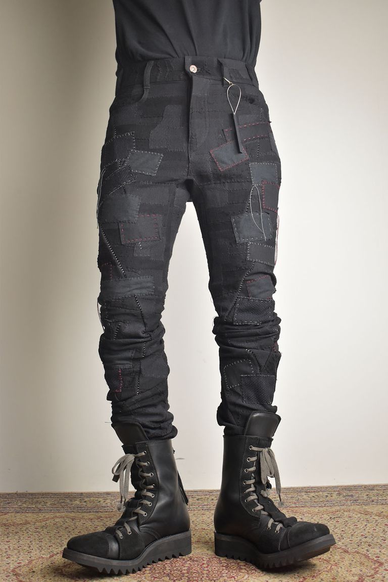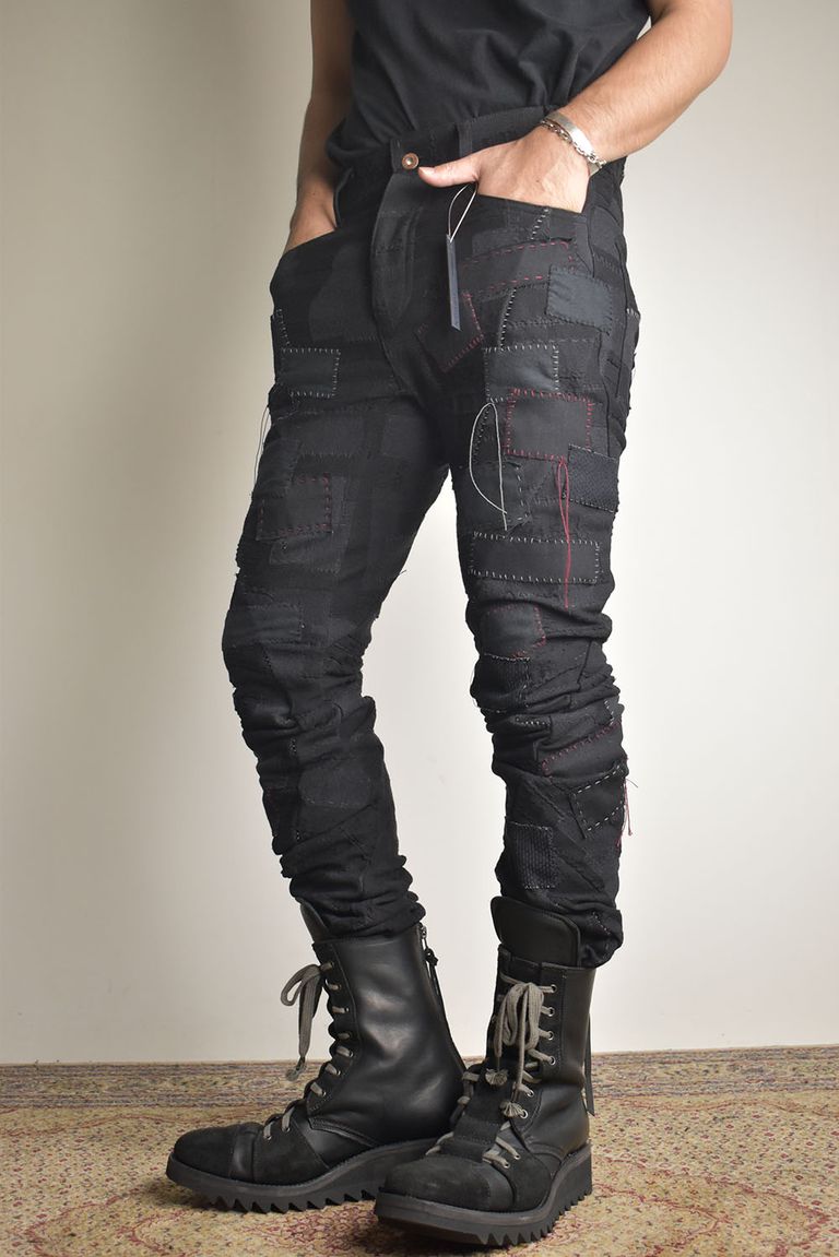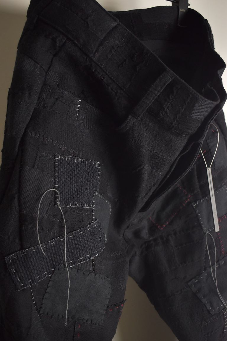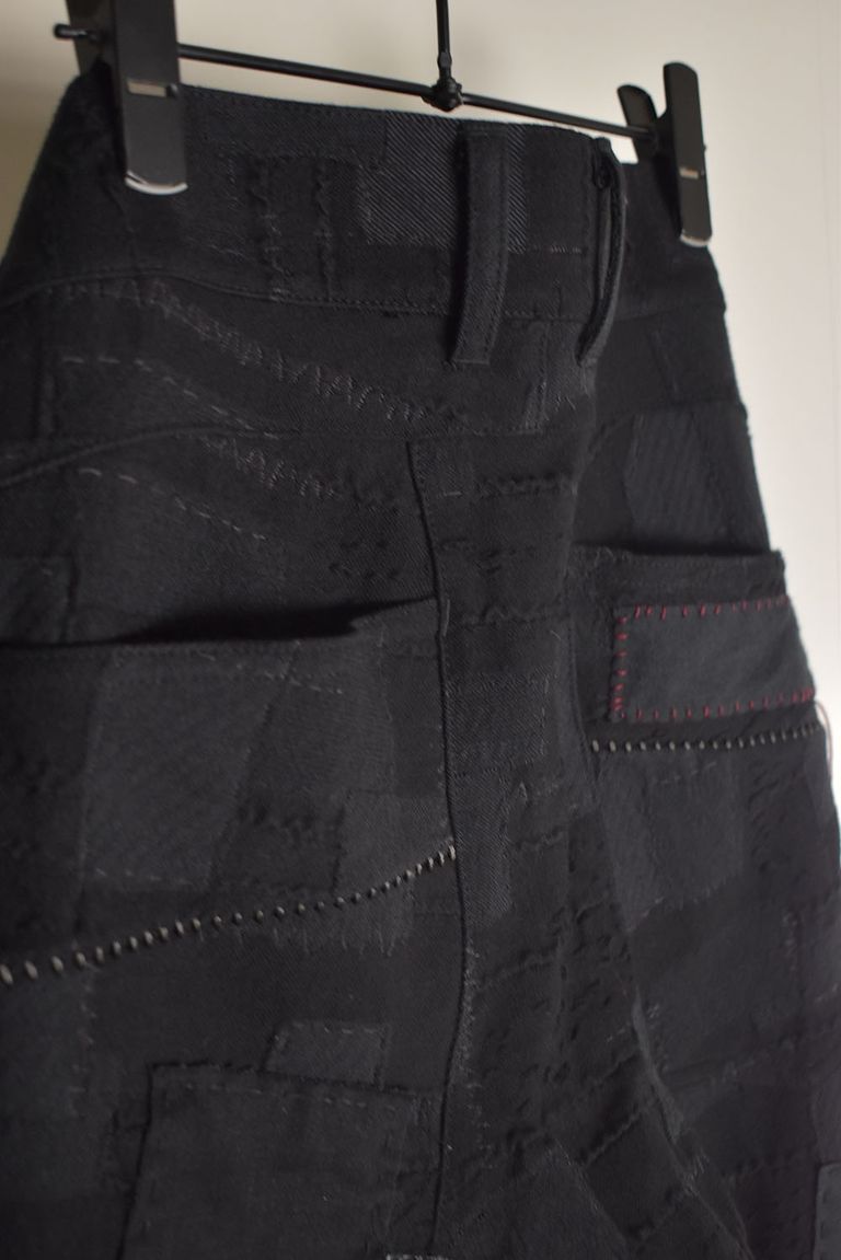Hand Patchwork Crust Jacquard Overlock Twist Curve Pants "Black" / ハンドパッチワーククラストジャガードオーバーロックツイストカーブパンツ"ブラック"