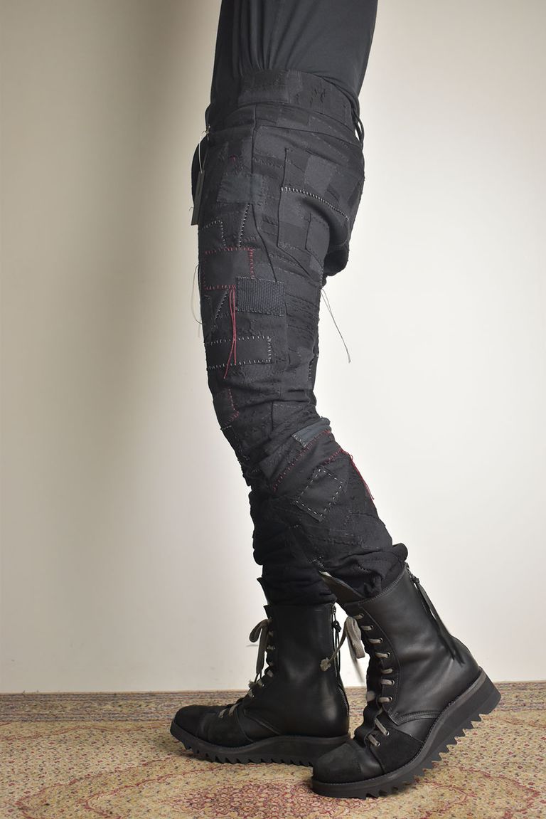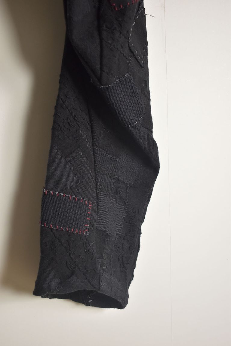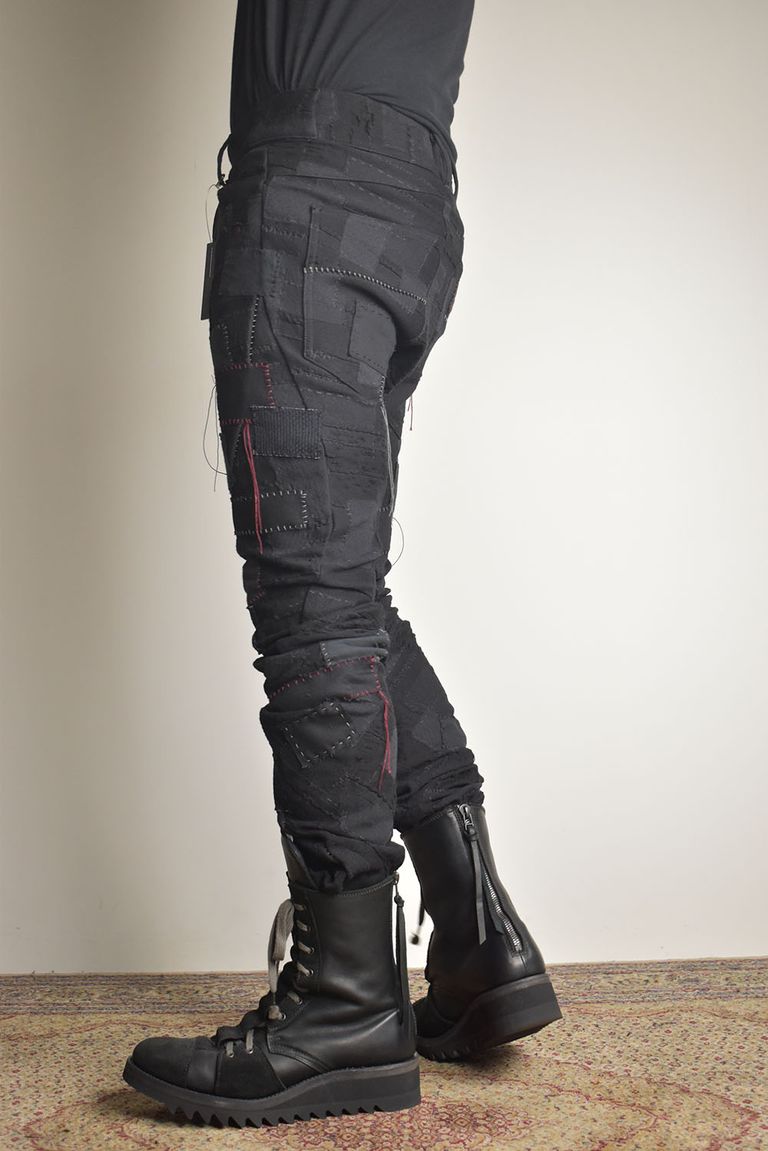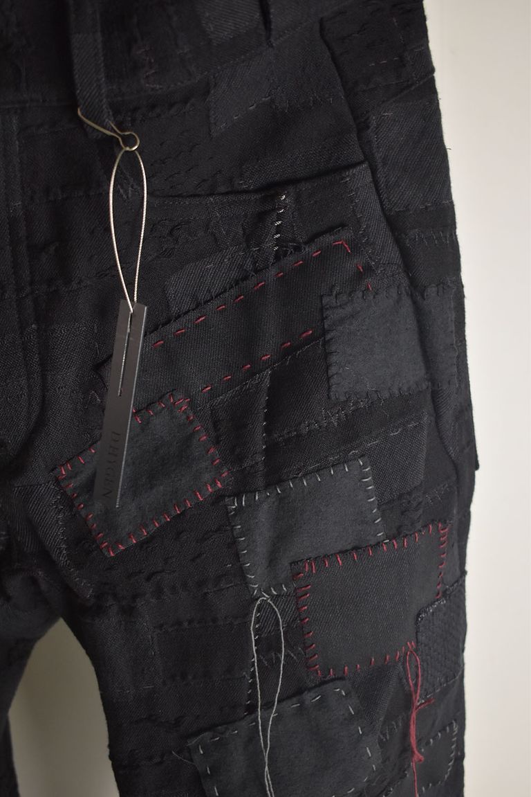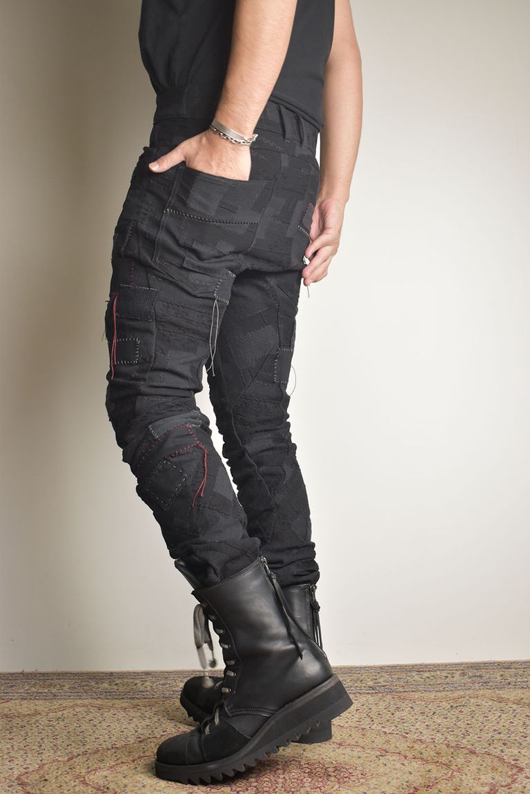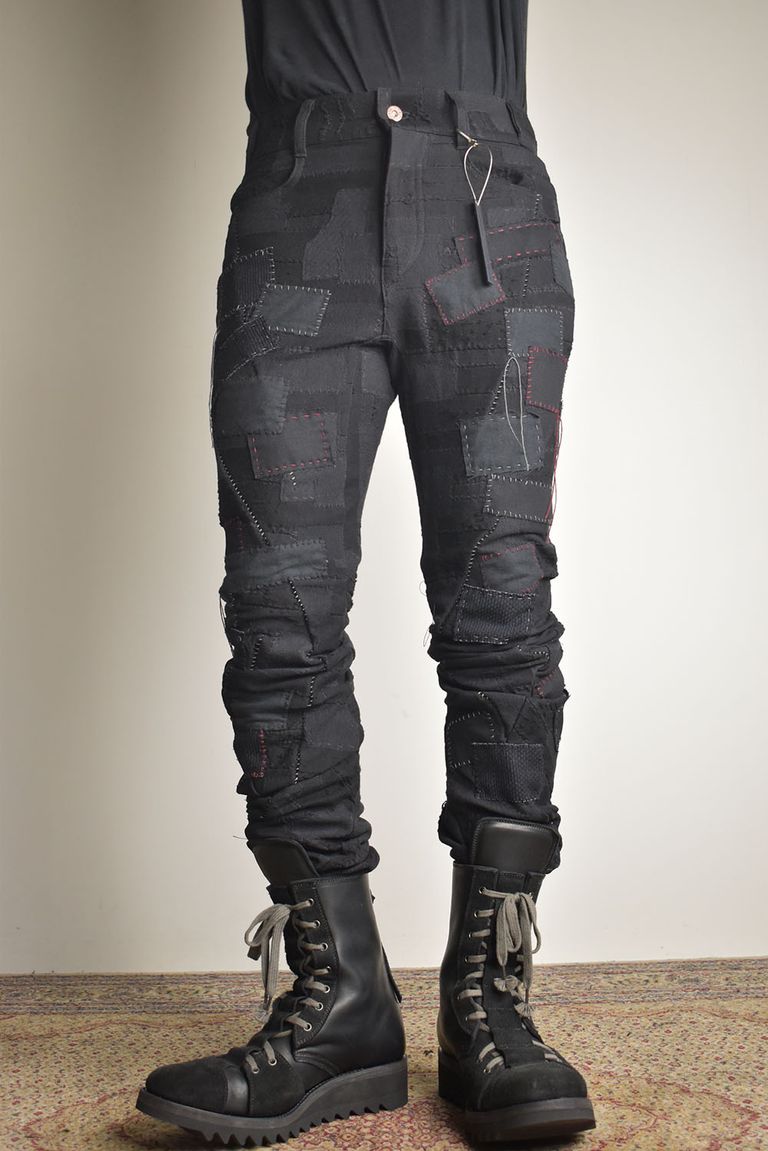 Hand Patchwork Crust Jacquard Overlock Twist Curve Pants "Black" / ハンドパッチワーククラストジャガードオーバーロックツイストカーブパンツ"ブラック"