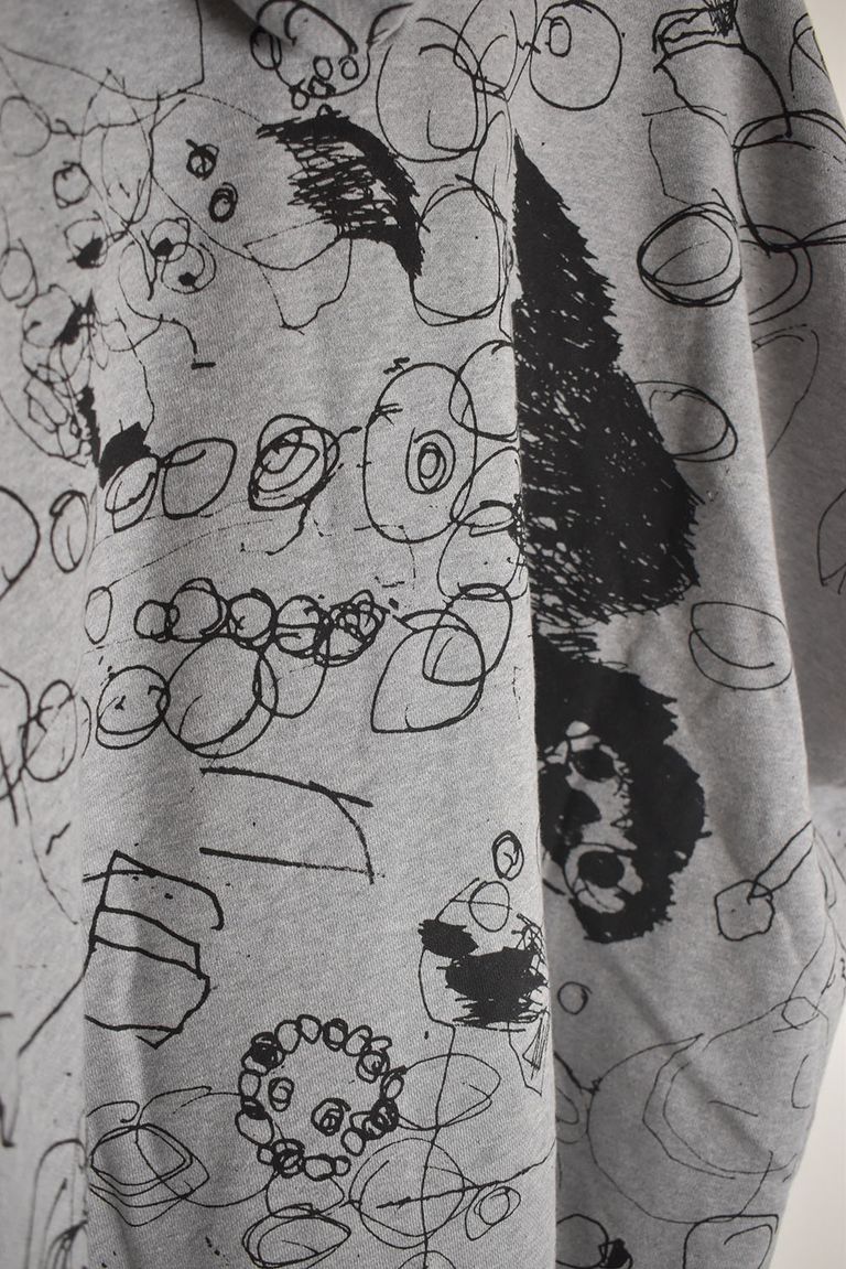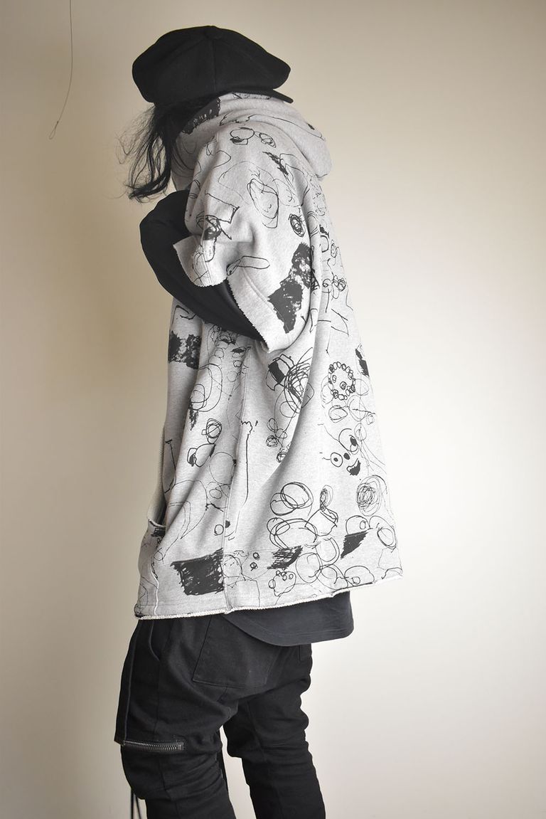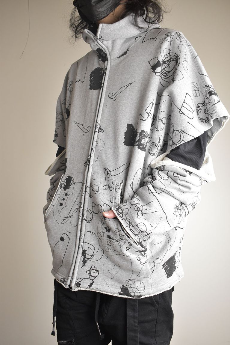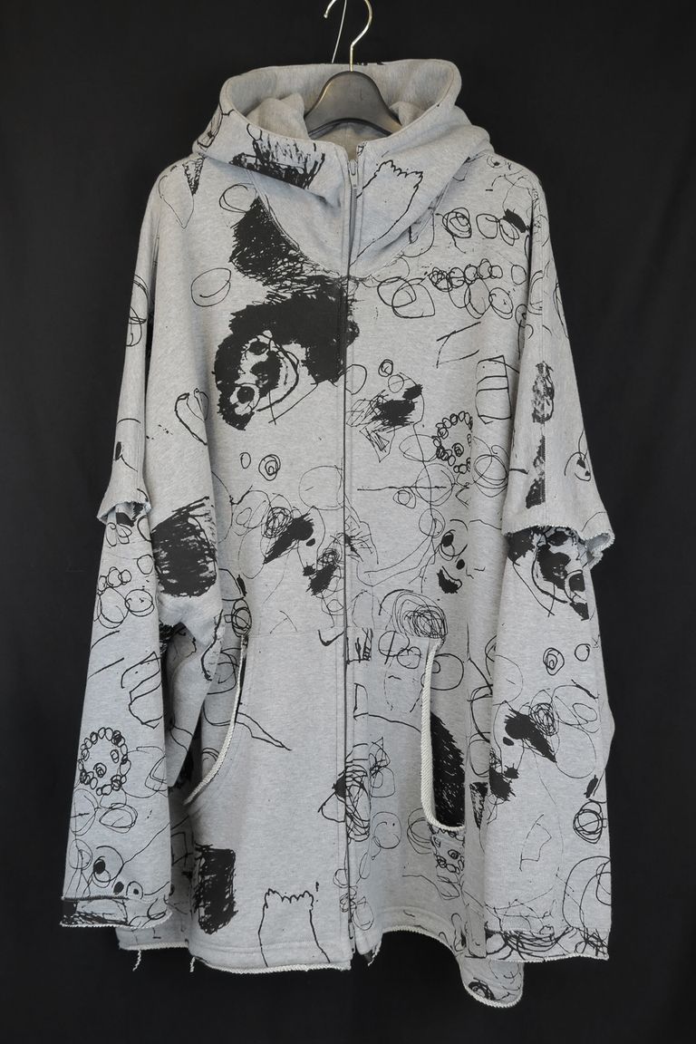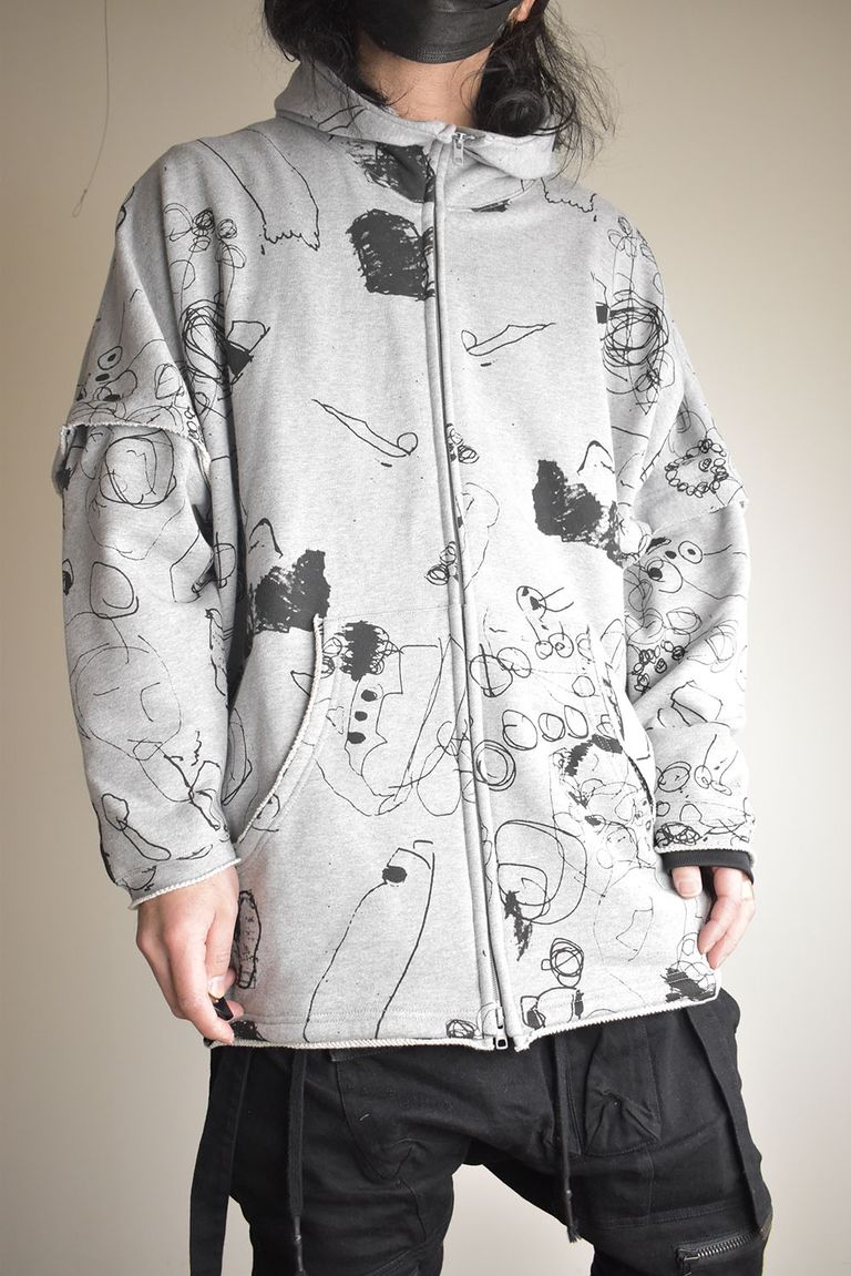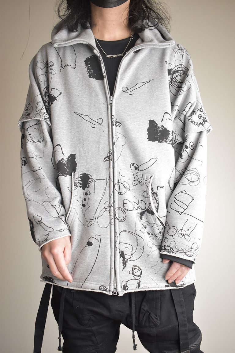 Sweat Oversize Print Zip Up Hoodie"Grey" / スウェットオーバーサイズプリントジップアップパーカ"グレー"