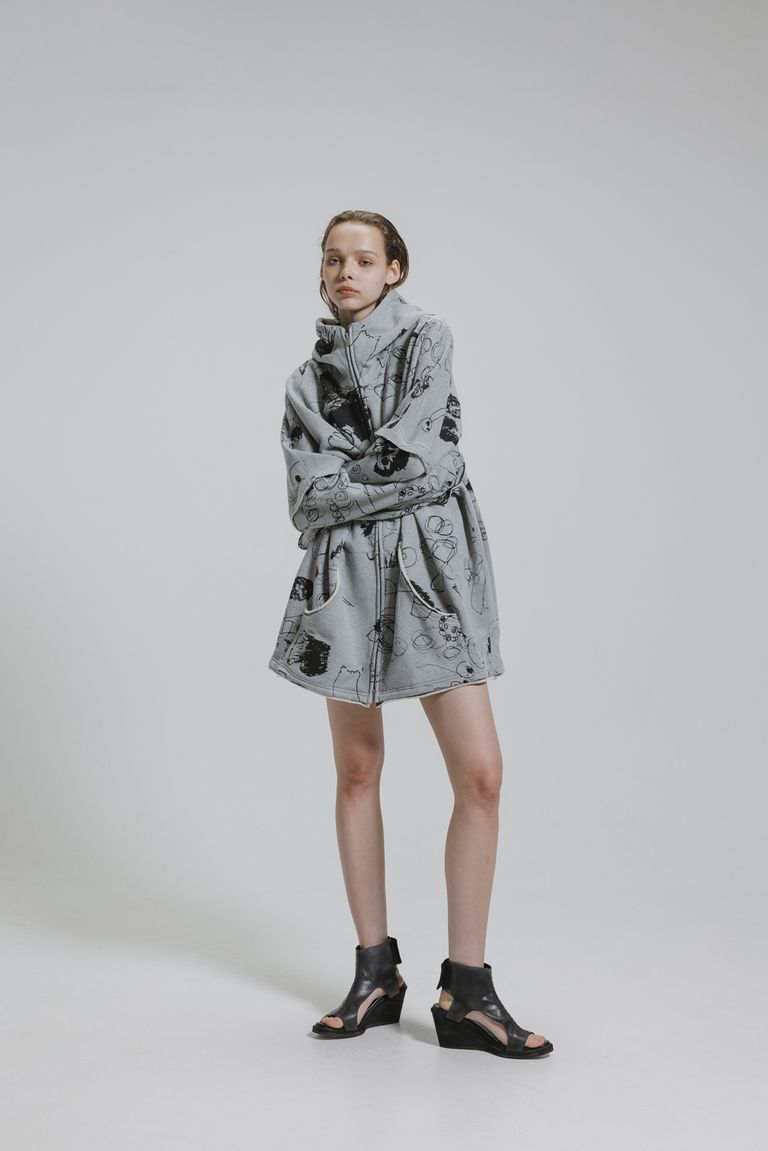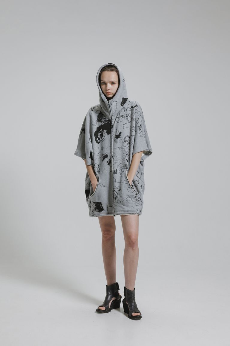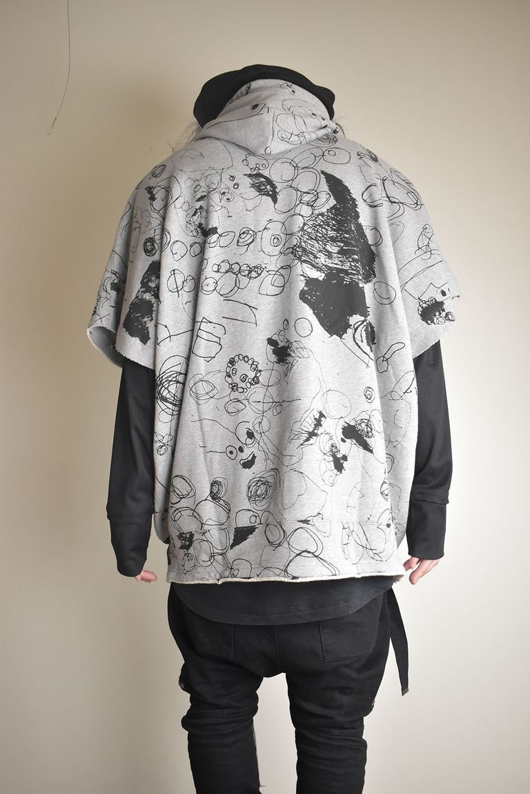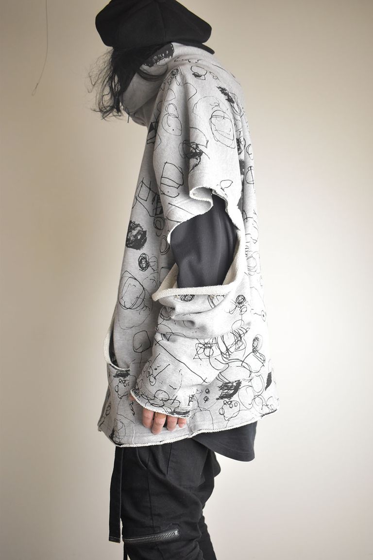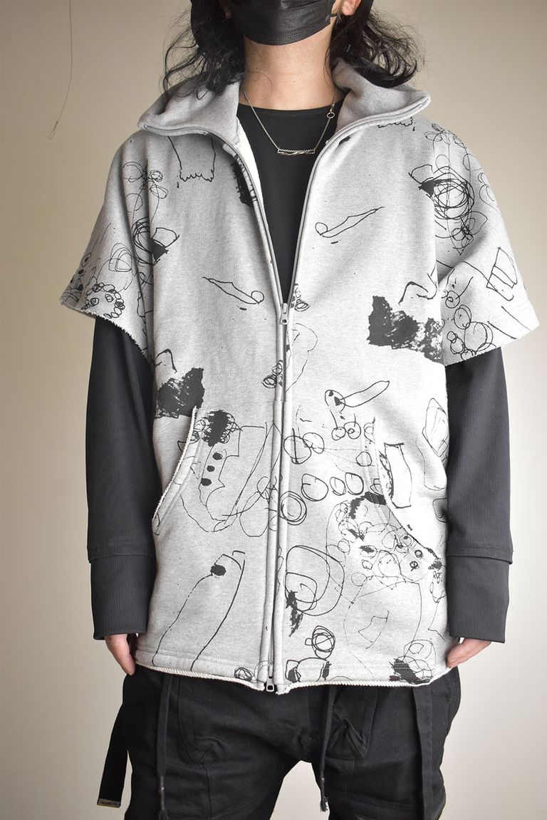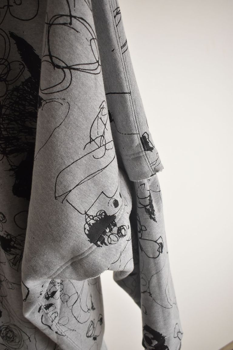 Sweat Oversize Print Zip Up Hoodie"Grey" / スウェットオーバーサイズプリントジップアップパーカ"グレー"