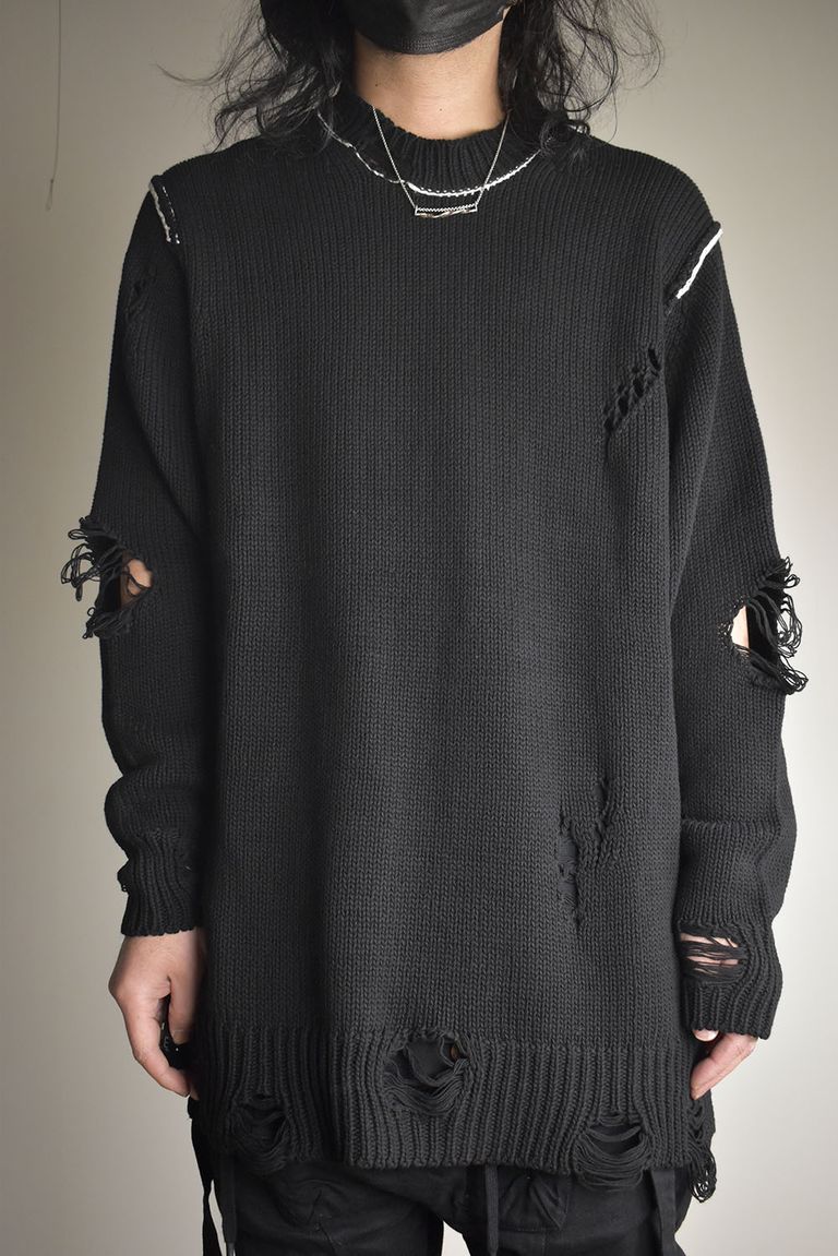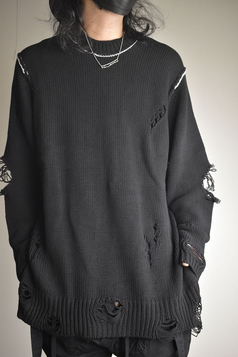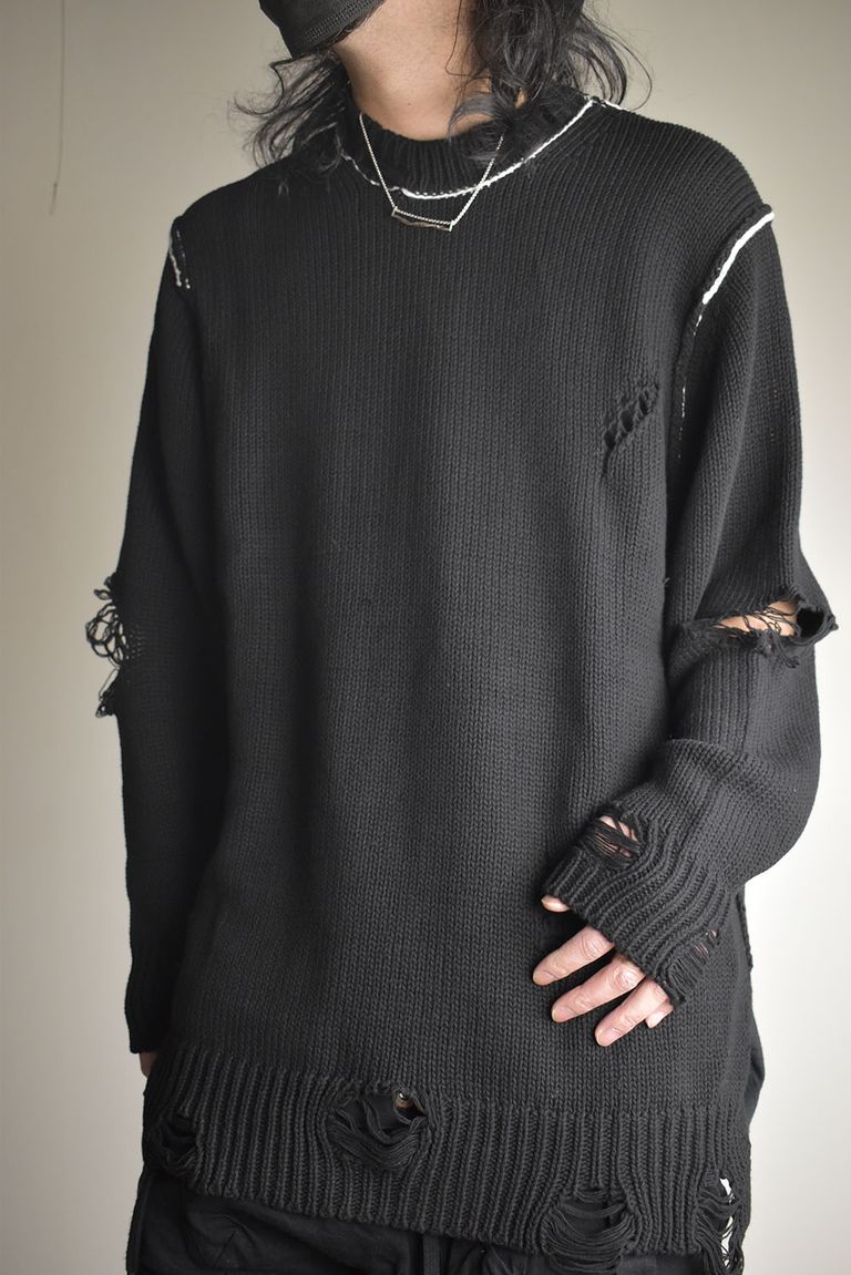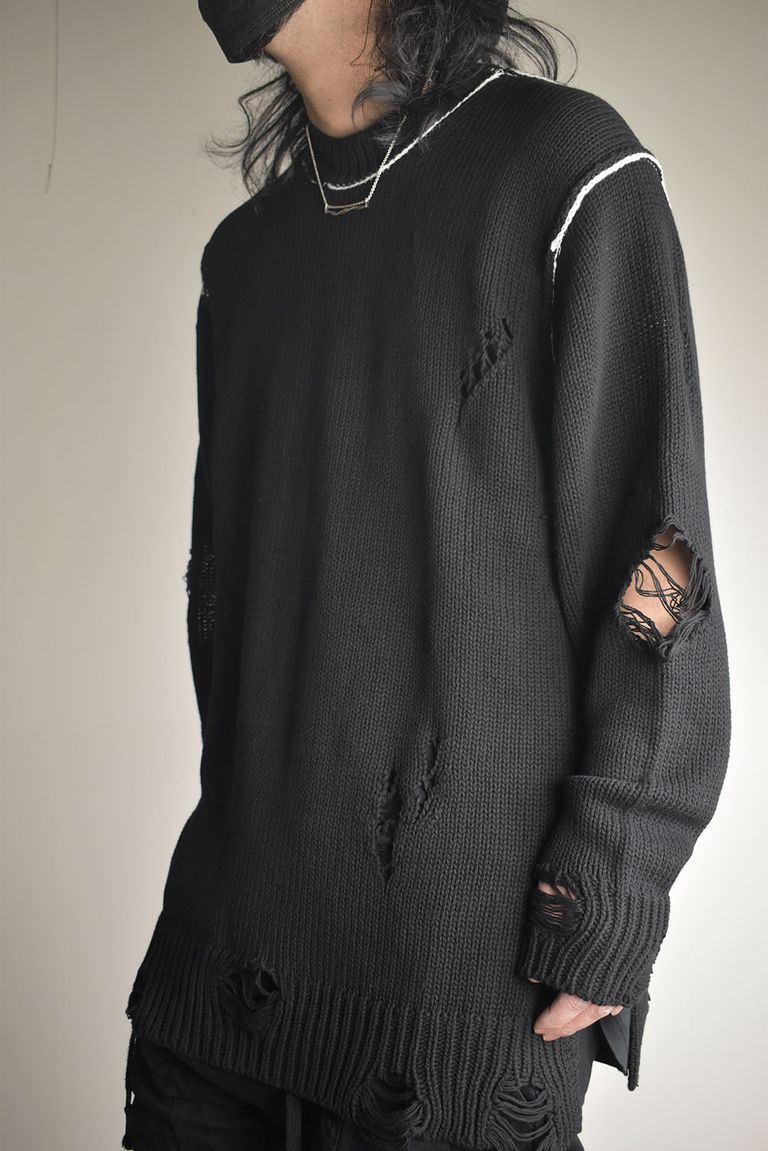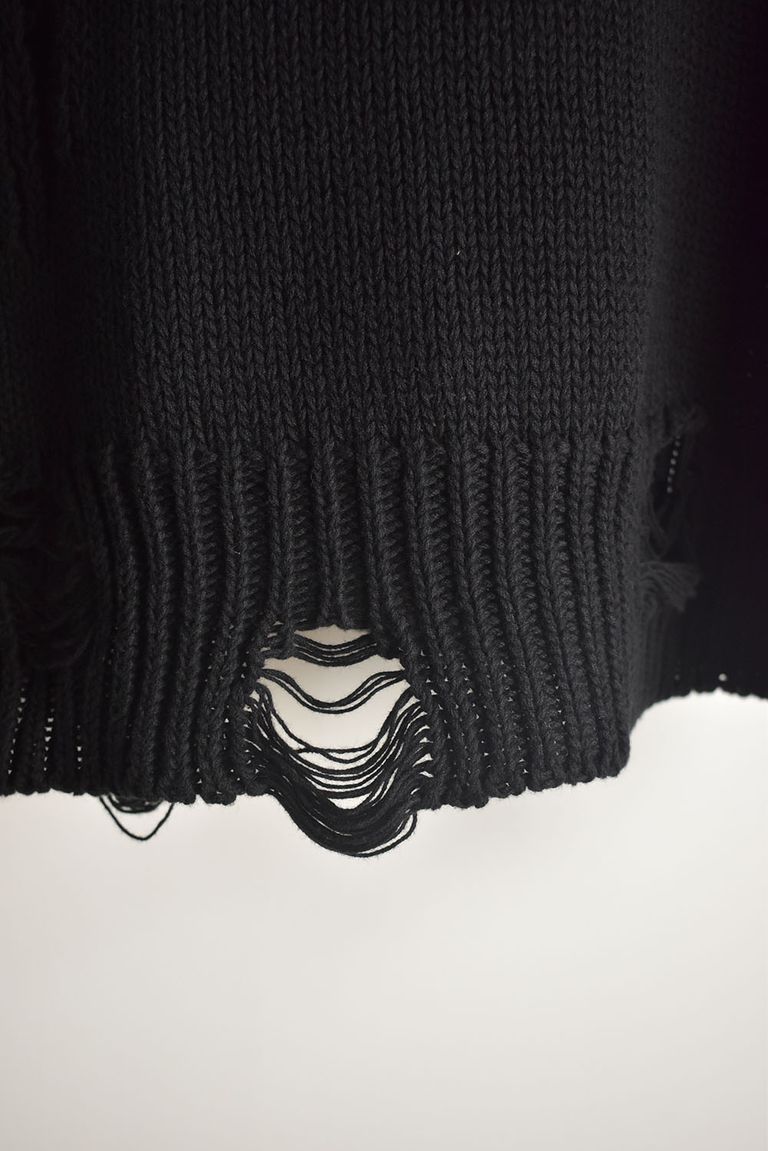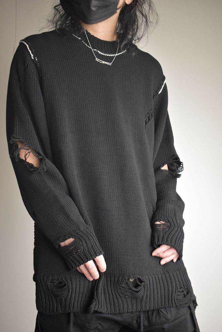 Cotton 3GG Damaged Knit Pullover"Black" / コットン 3GG ダメージニットプルオーバー"ブラック"