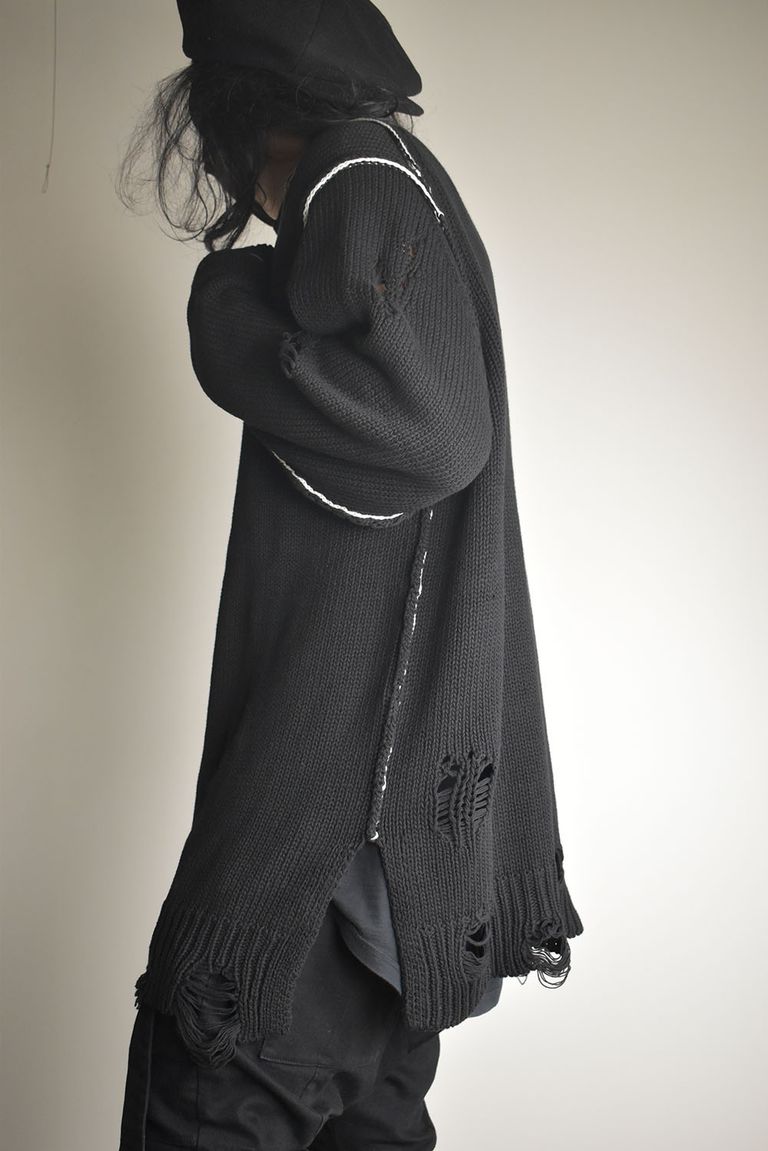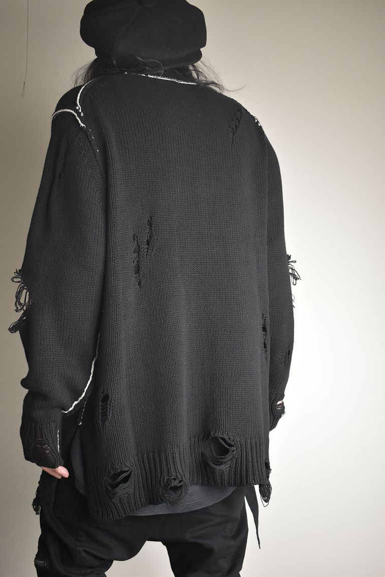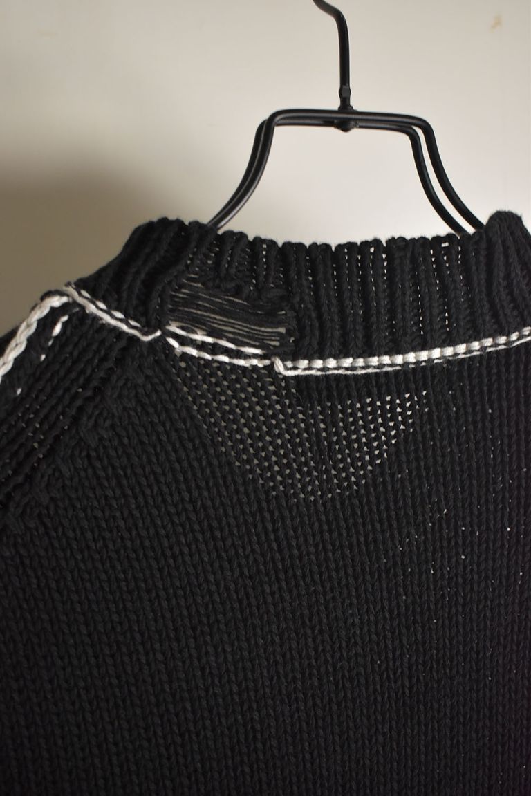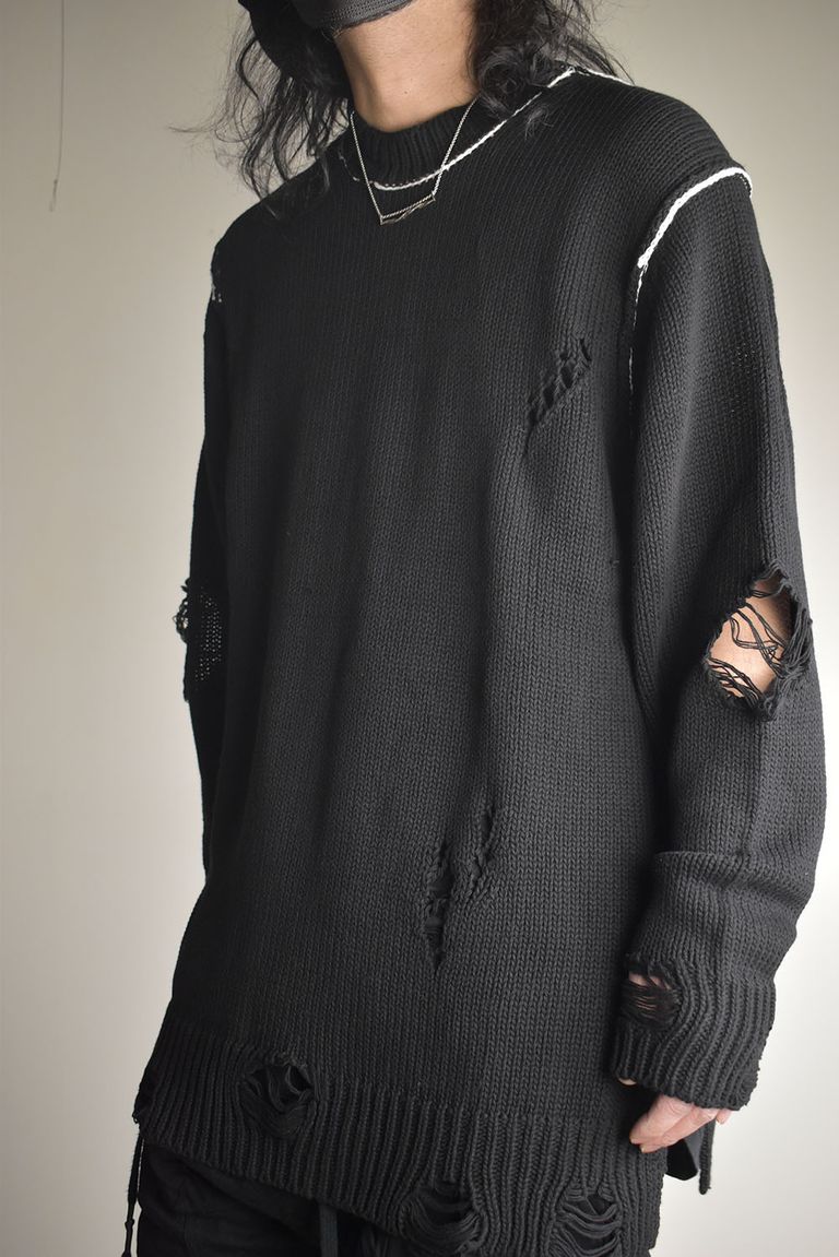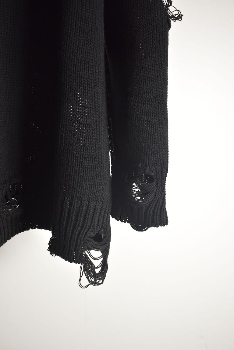 Cotton 3GG Damaged Knit Pullover"Black" / コットン 3GG ダメージニットプルオーバー"ブラック"