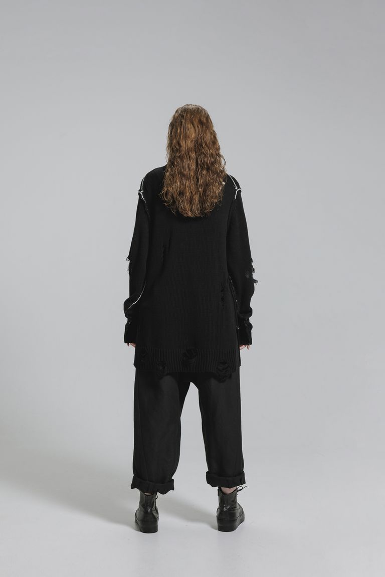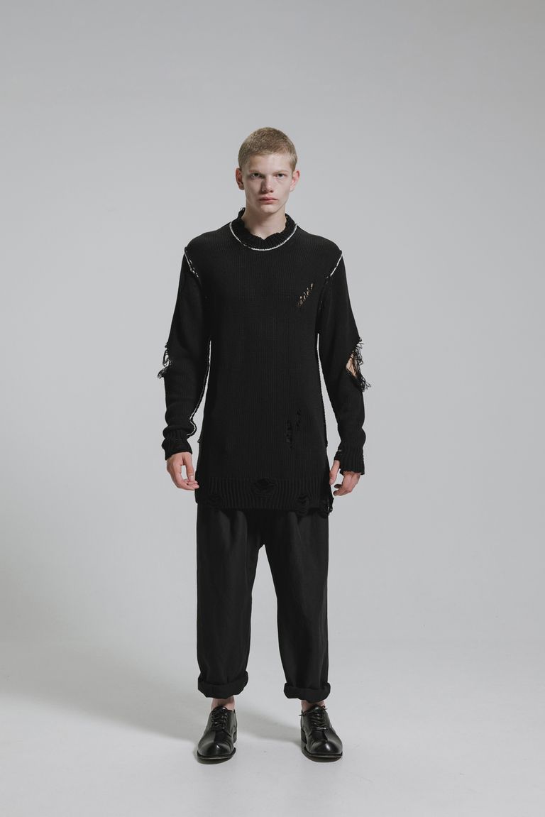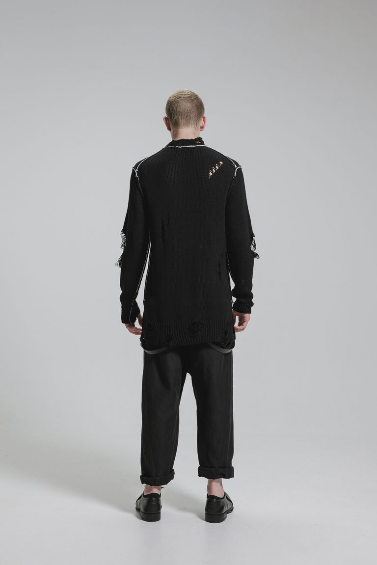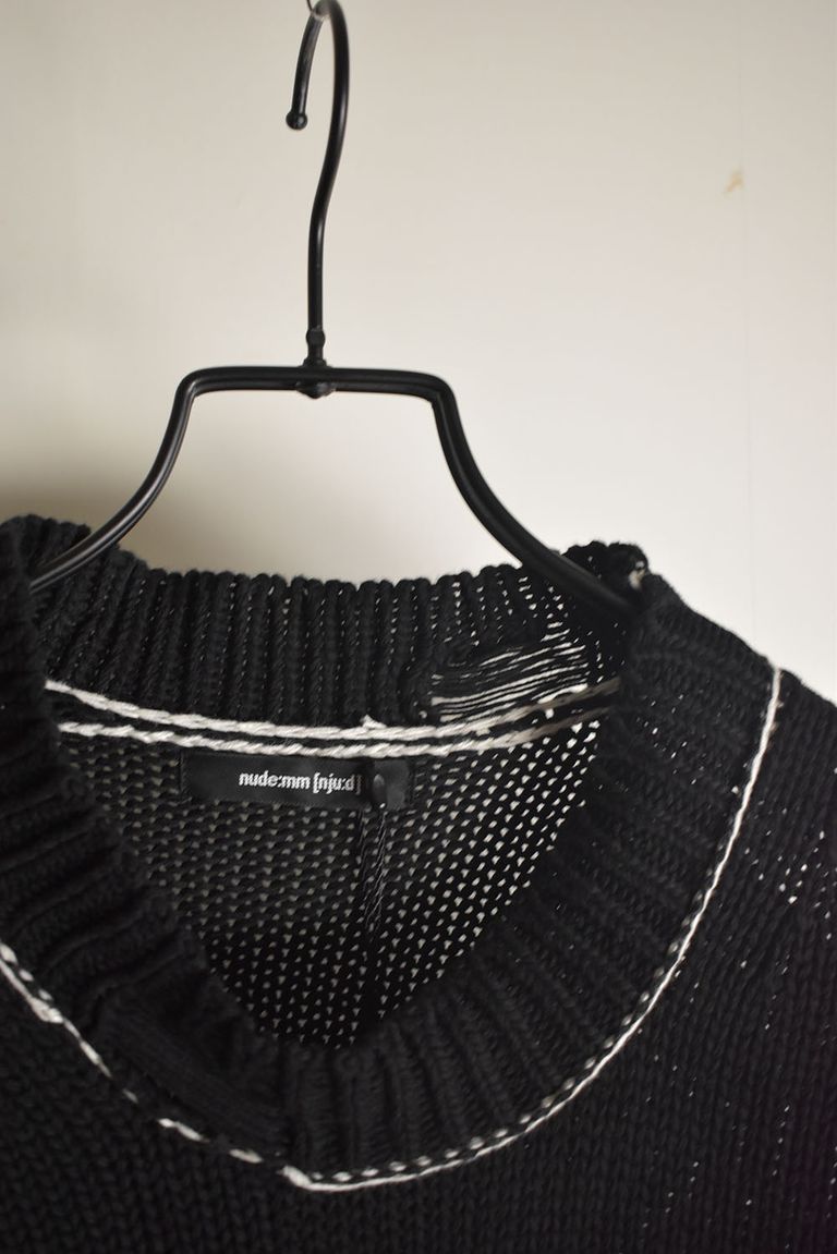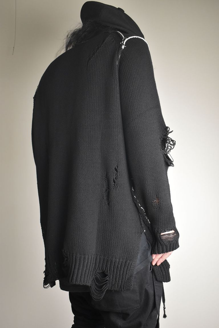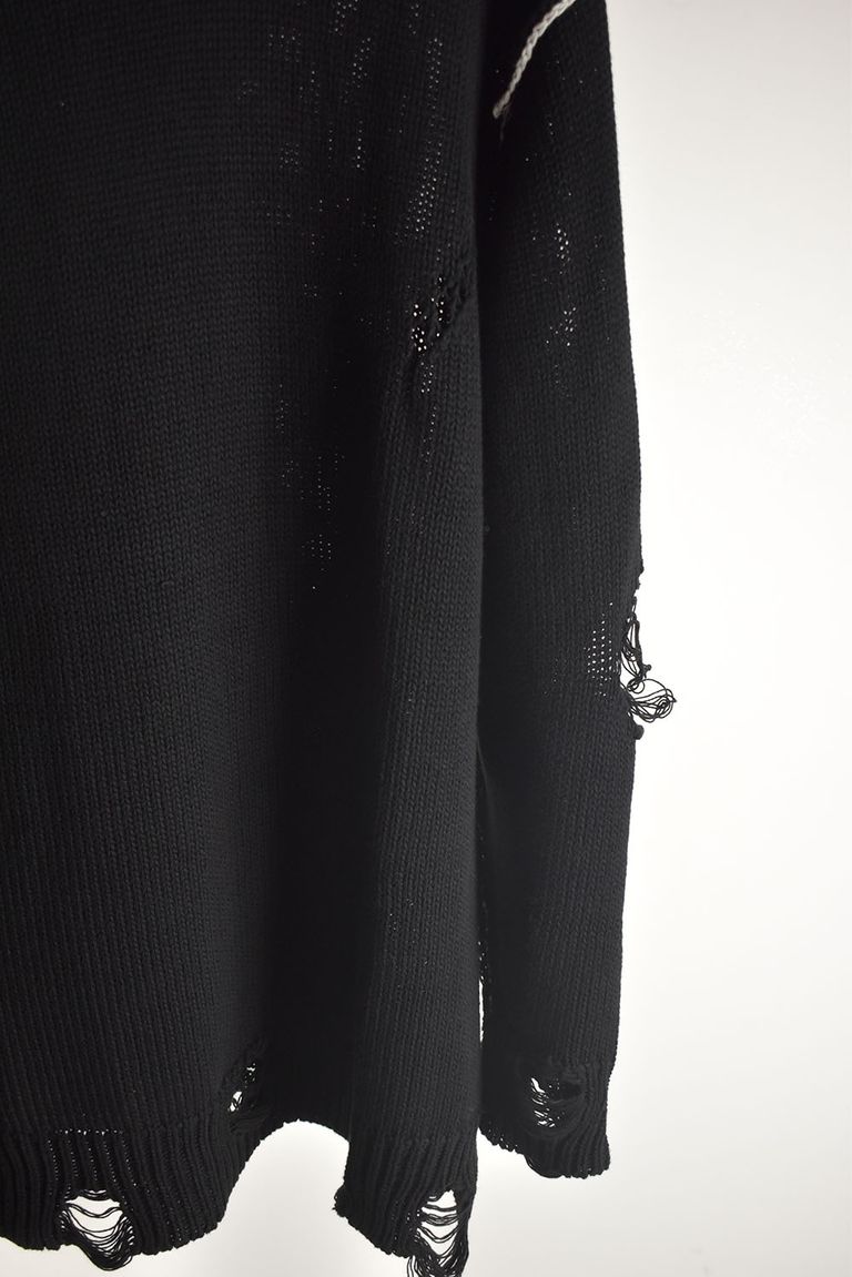 Cotton 3GG Damaged Knit Pullover"Black" / コットン 3GG ダメージニットプルオーバー"ブラック"
