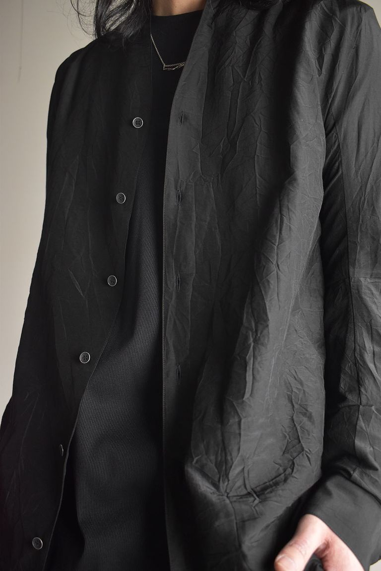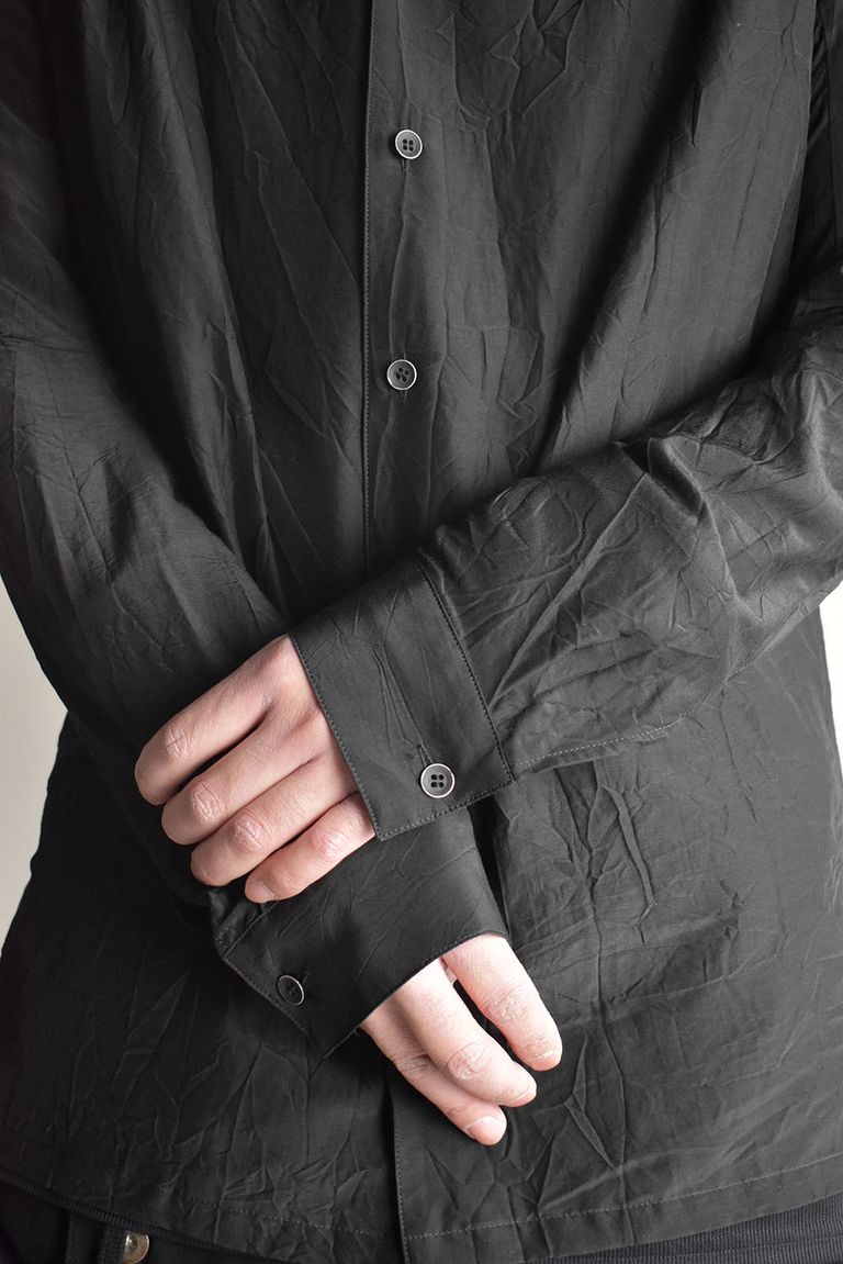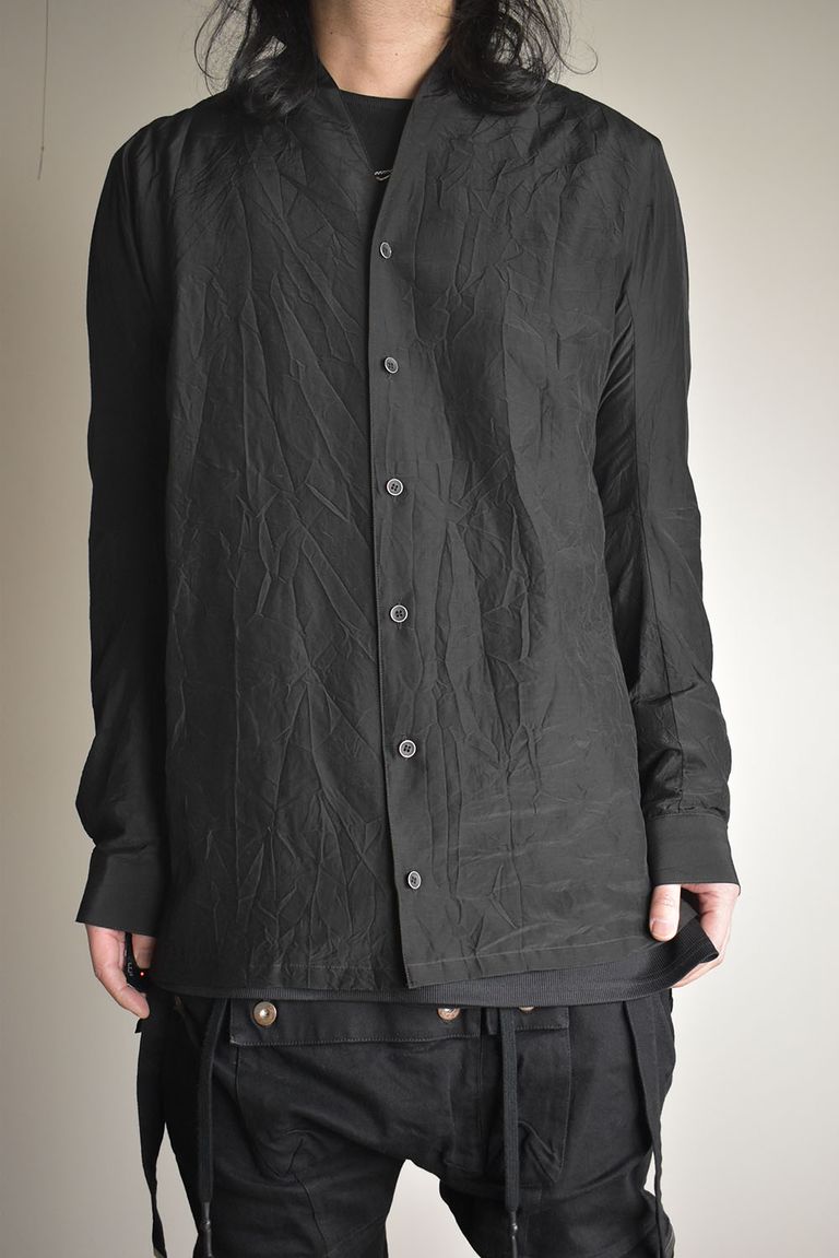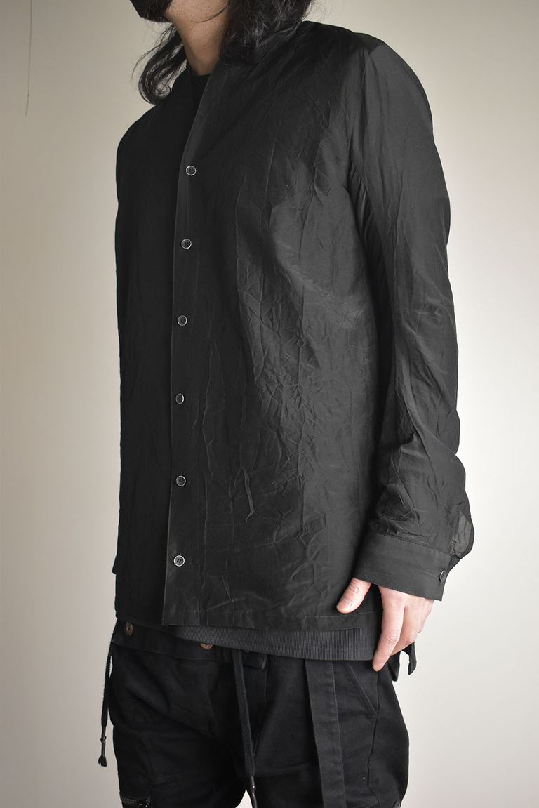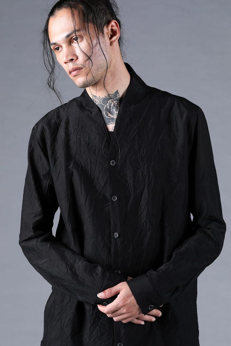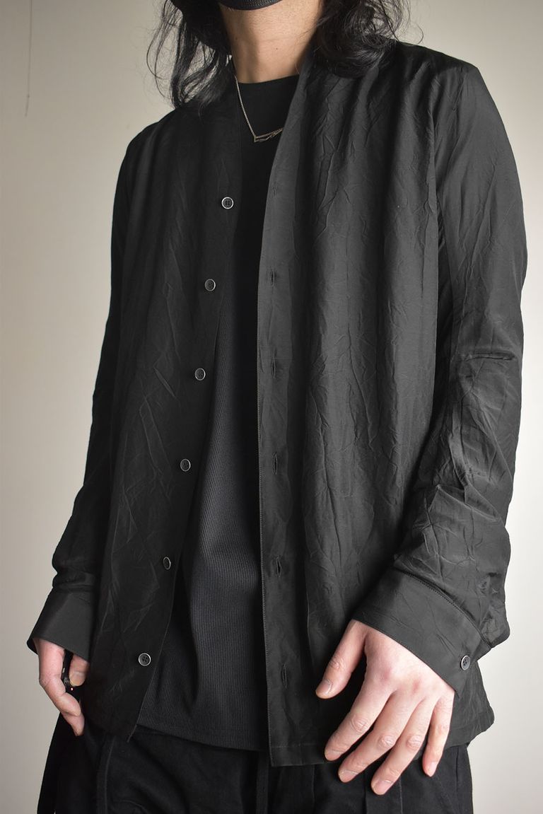 Silk Cotton Washer Shawl Collar Shirt"Black" / シルクコットンワッシャーショールカラーシャツ"ブラック"