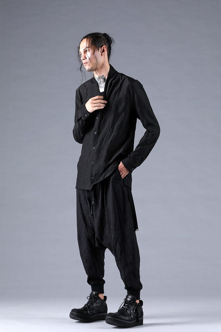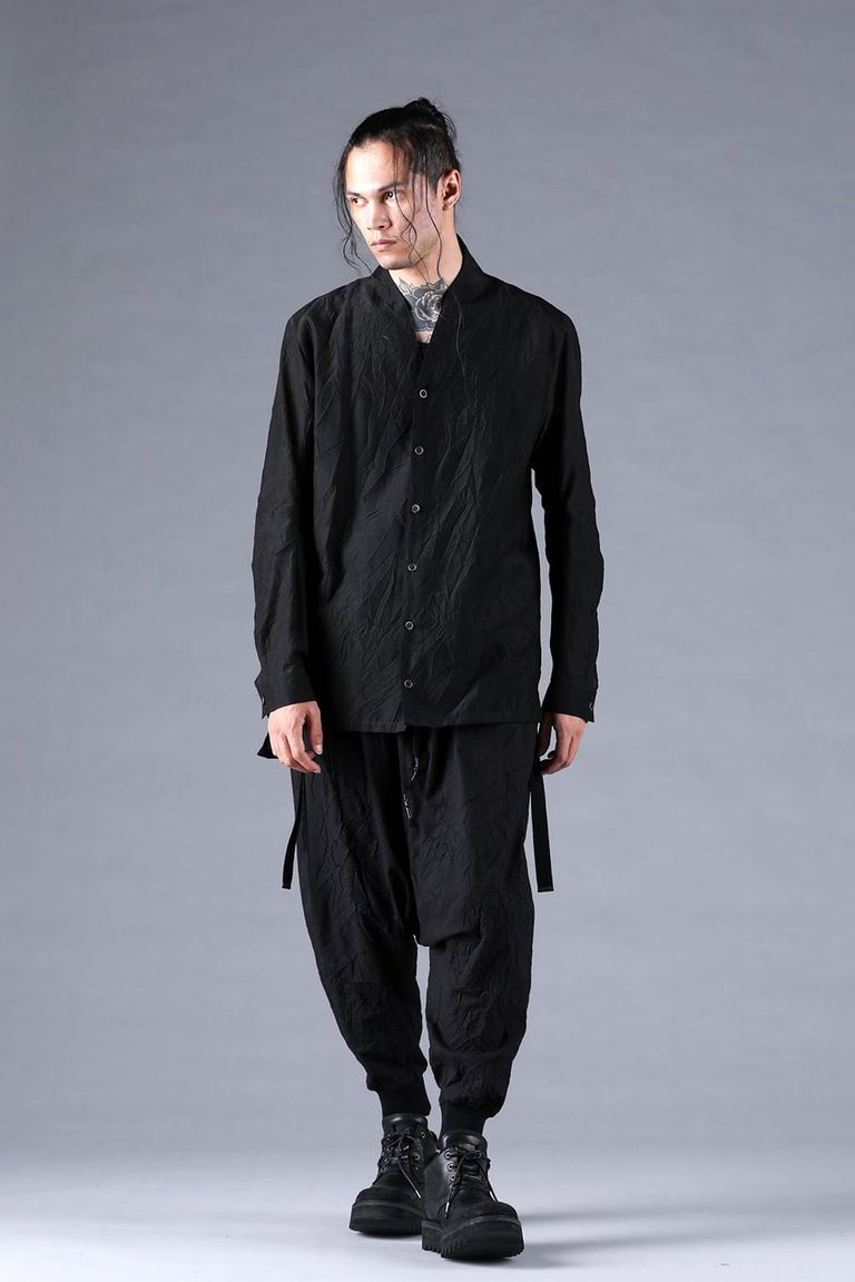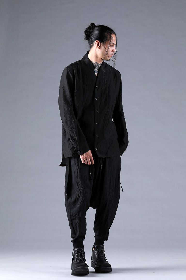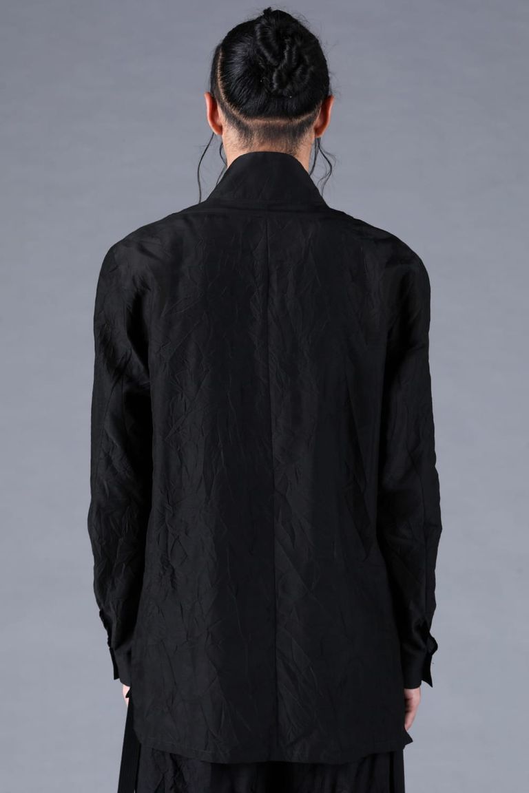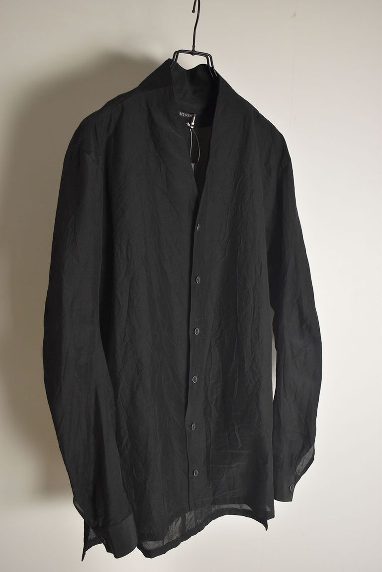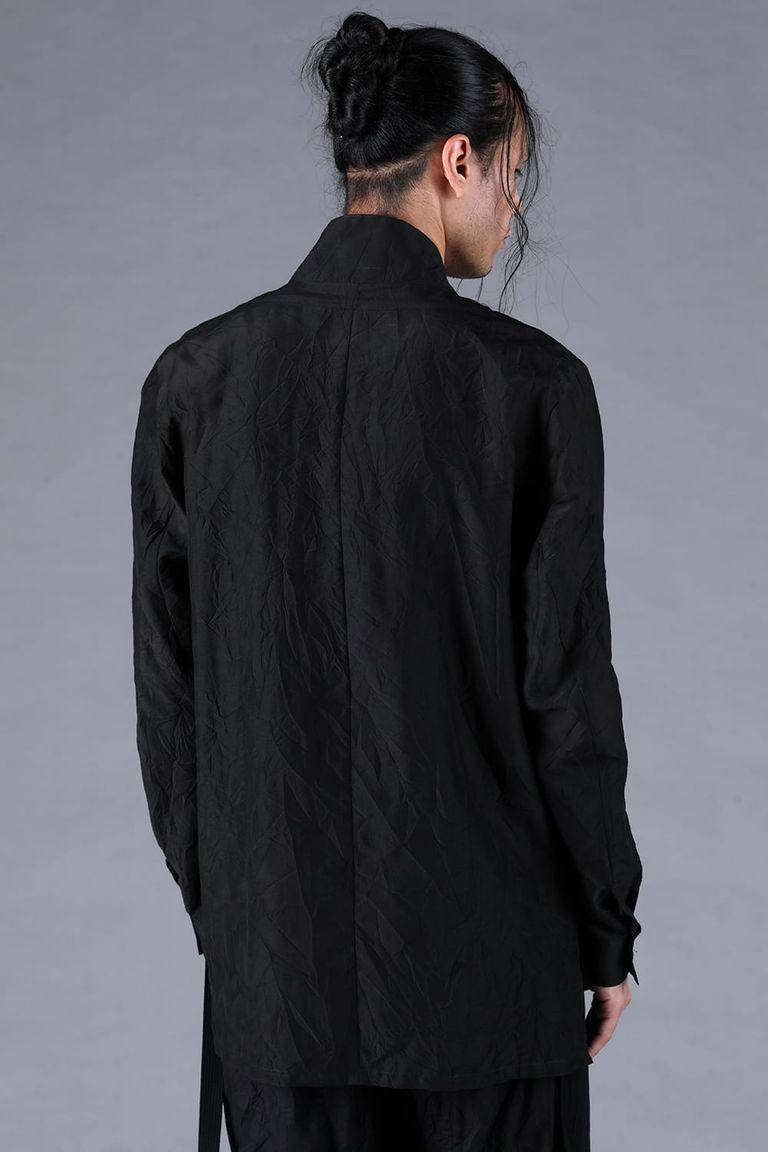 Silk Cotton Washer Shawl Collar Shirt"Black" / シルクコットンワッシャーショールカラーシャツ"ブラック"