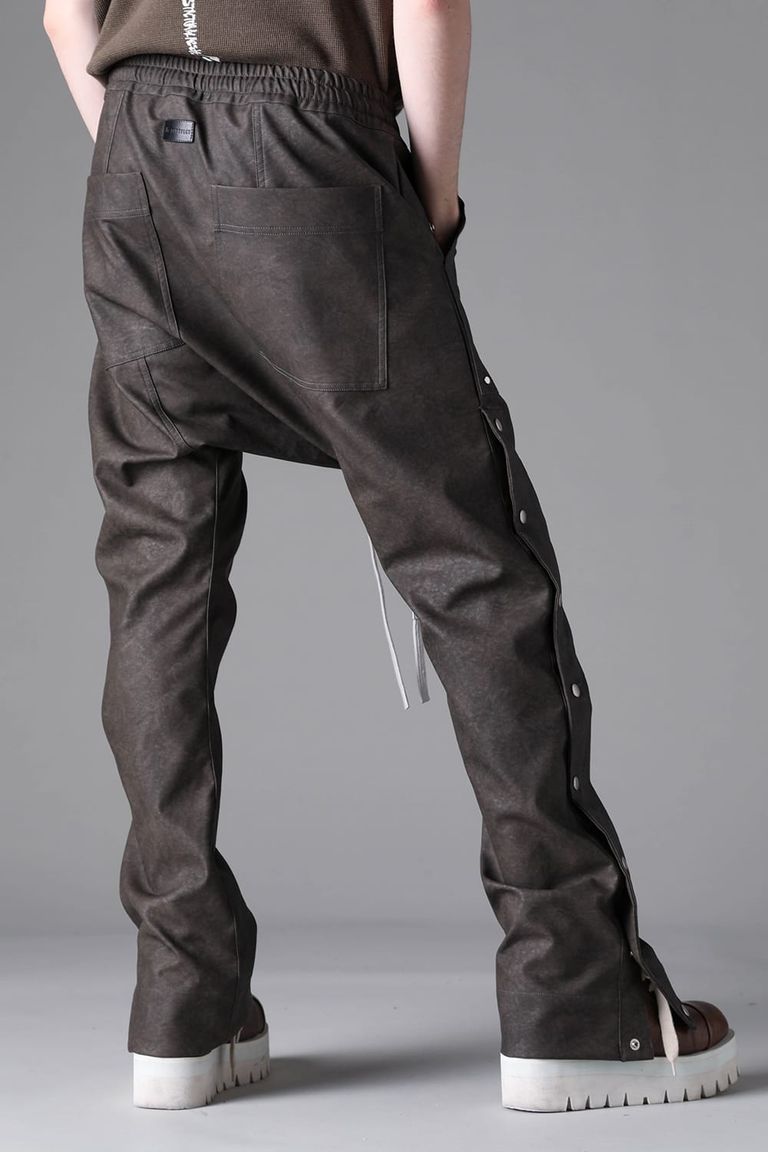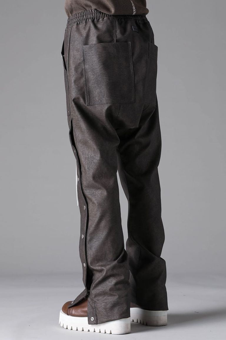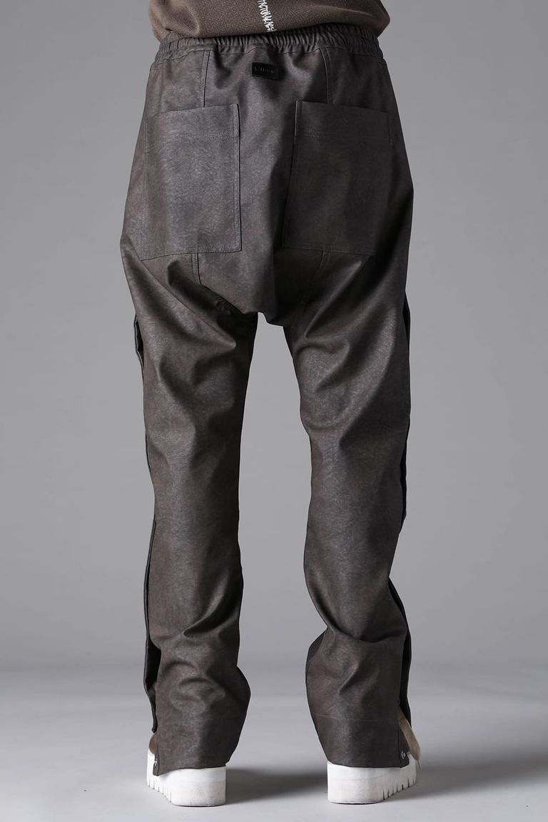 《2026AW先行予約》Vegan Leather Sarrouel Flare Pants"Smoke Black / Khaki" / ヴィーガンレザーサルエルフレアパンツ"スモークブラック/カーキ"