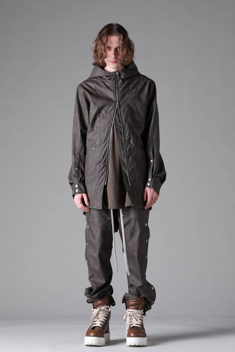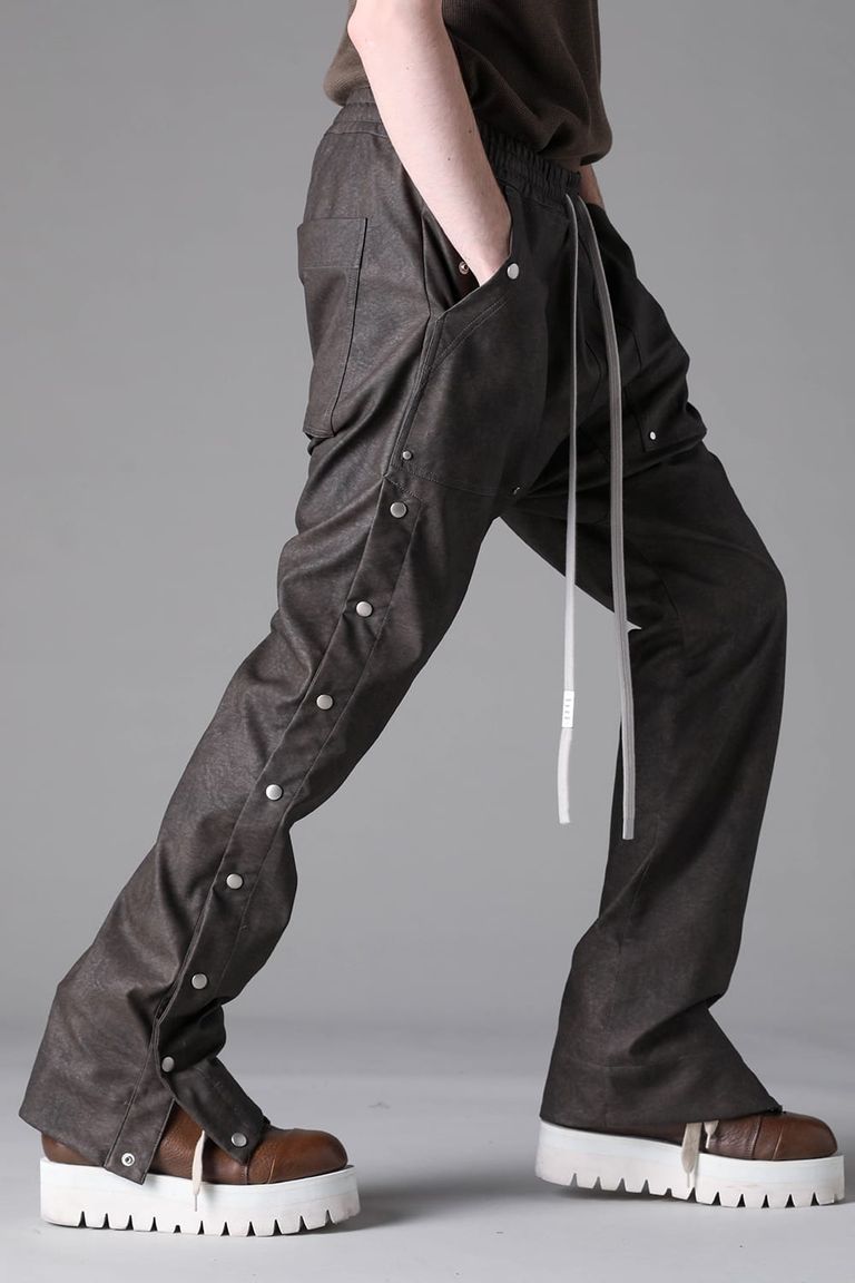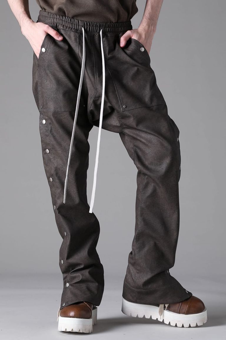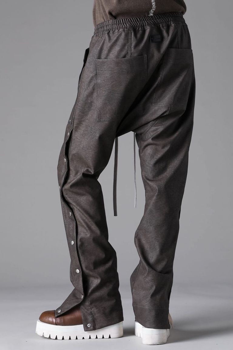《2026AW先行予約》Vegan Leather Sarrouel Flare Pants"Smoke Black / Khaki" / ヴィーガンレザーサルエルフレアパンツ"スモークブラック/カーキ"