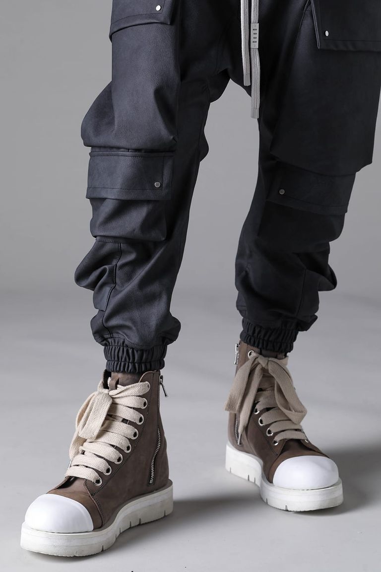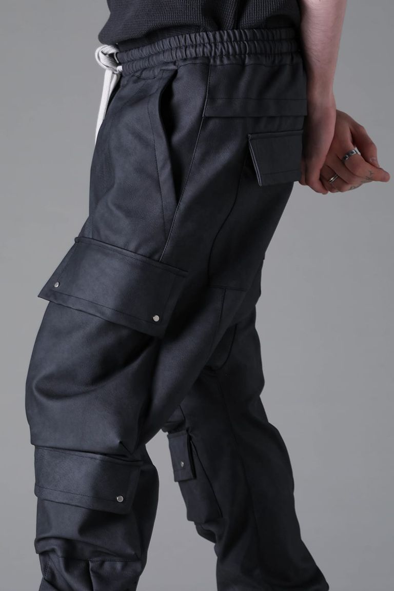 《2026AW先行予約》Vegan Leather Military Sarrouel Easy Pants"Smoke Black / Khaki" / ヴィーガンレザーミリタリーサルエルイージーパンツ"スモークブラック / カーキ"