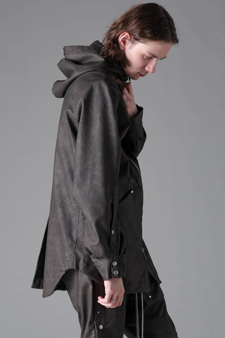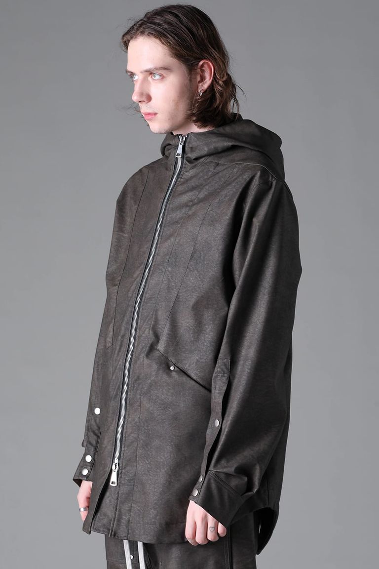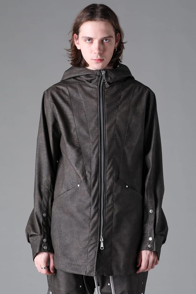《2026AW先行予約》Vegan Leather Hoodie Blouson"Khaki" / ヴィーガンレザーフーディブルゾン"カーキ"