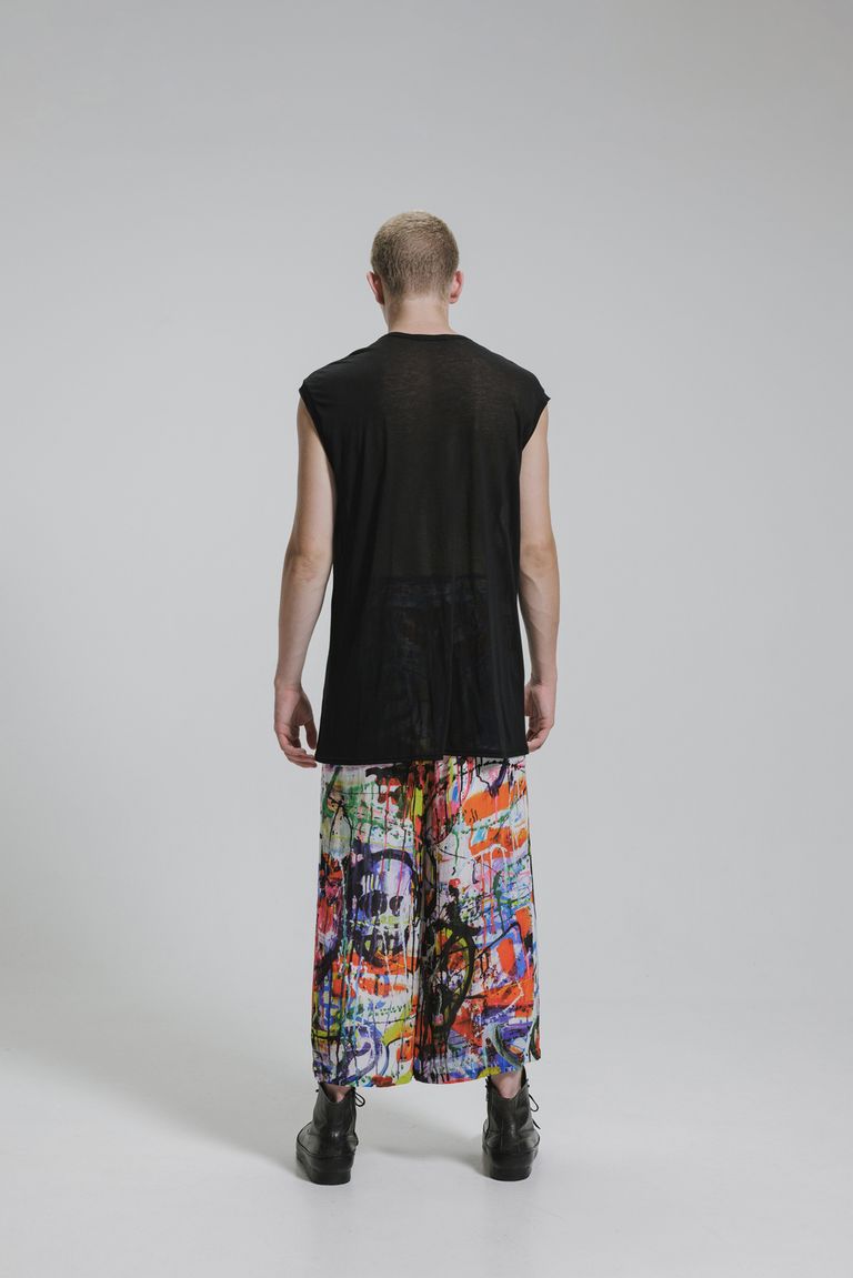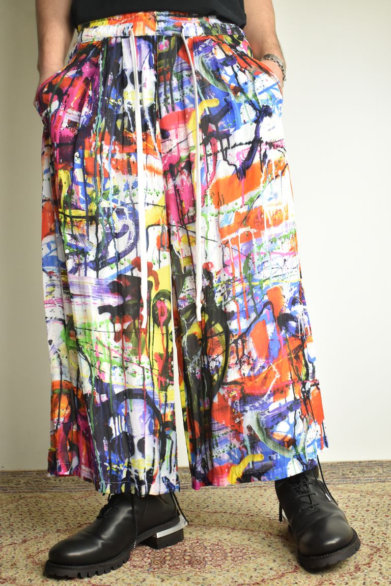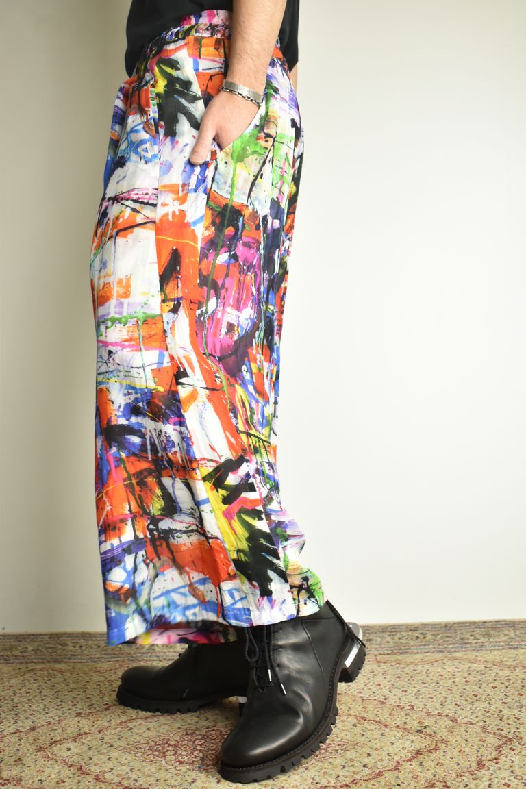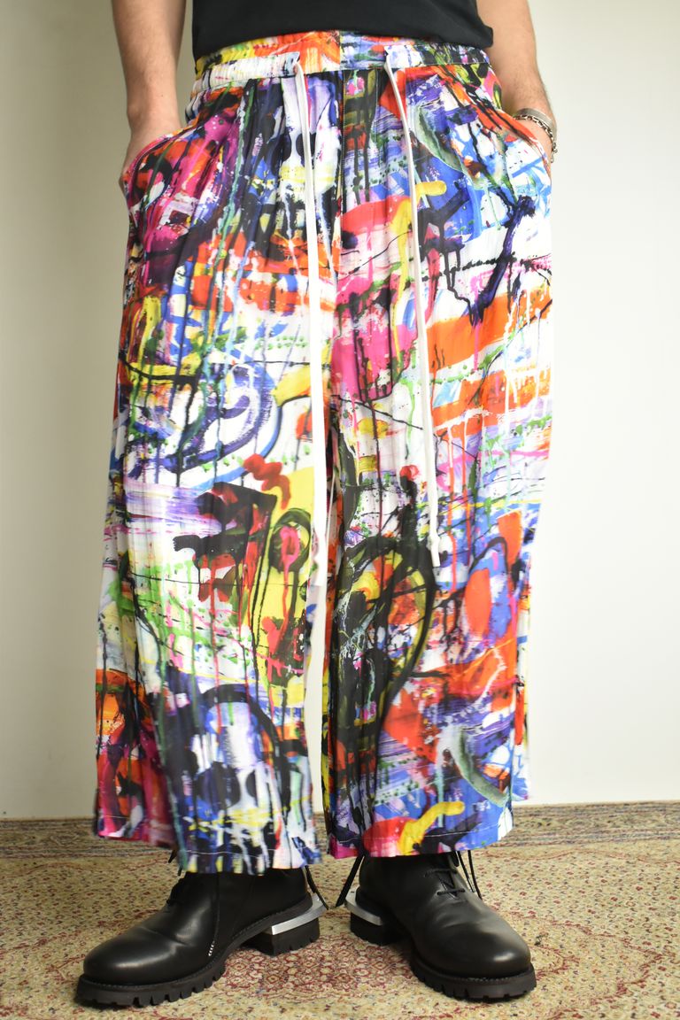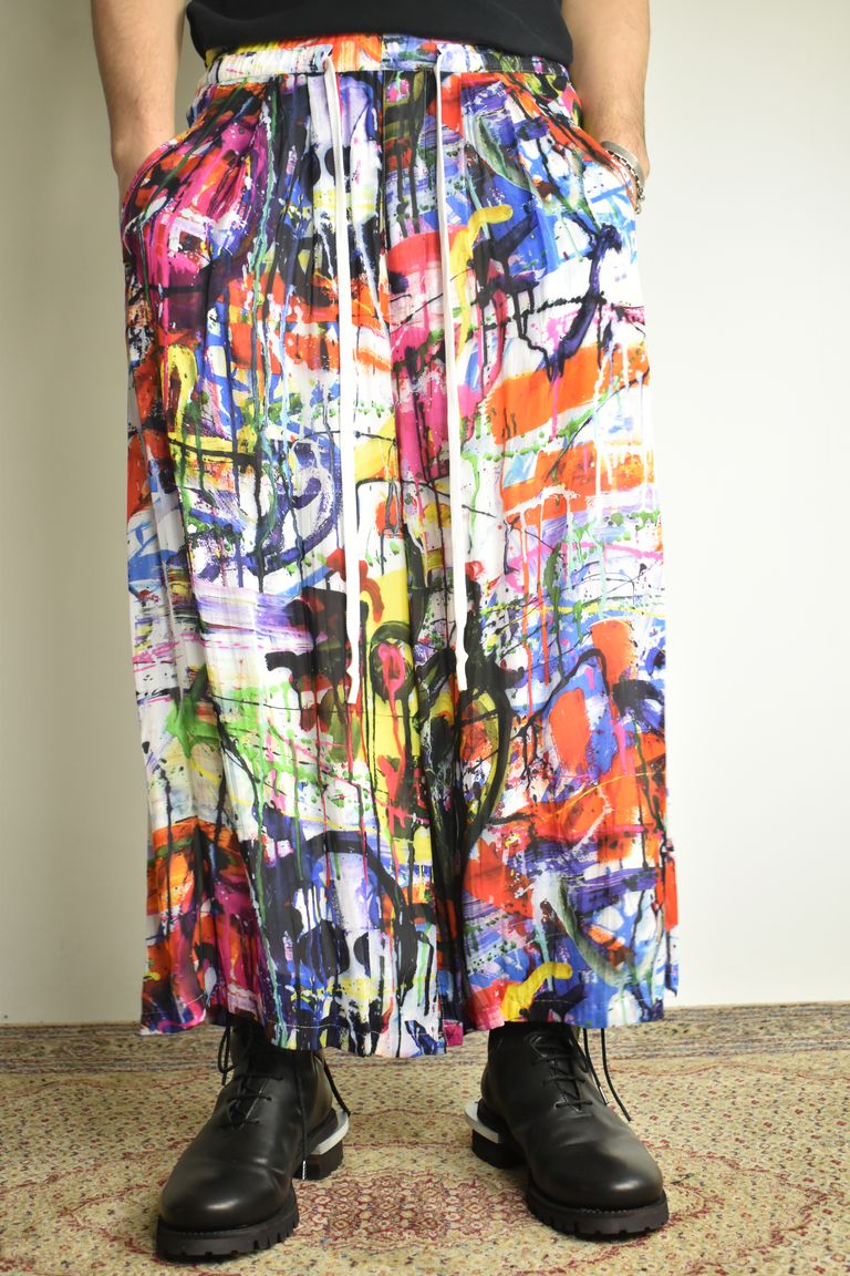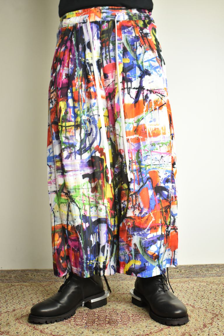 Rayon Chiffon Inkjet Print Wide Cropped Easy Pants"Color Print" / レーヨンシフォンインクジェットプリントワイドクロップドイージーパンツ"カラープリント"